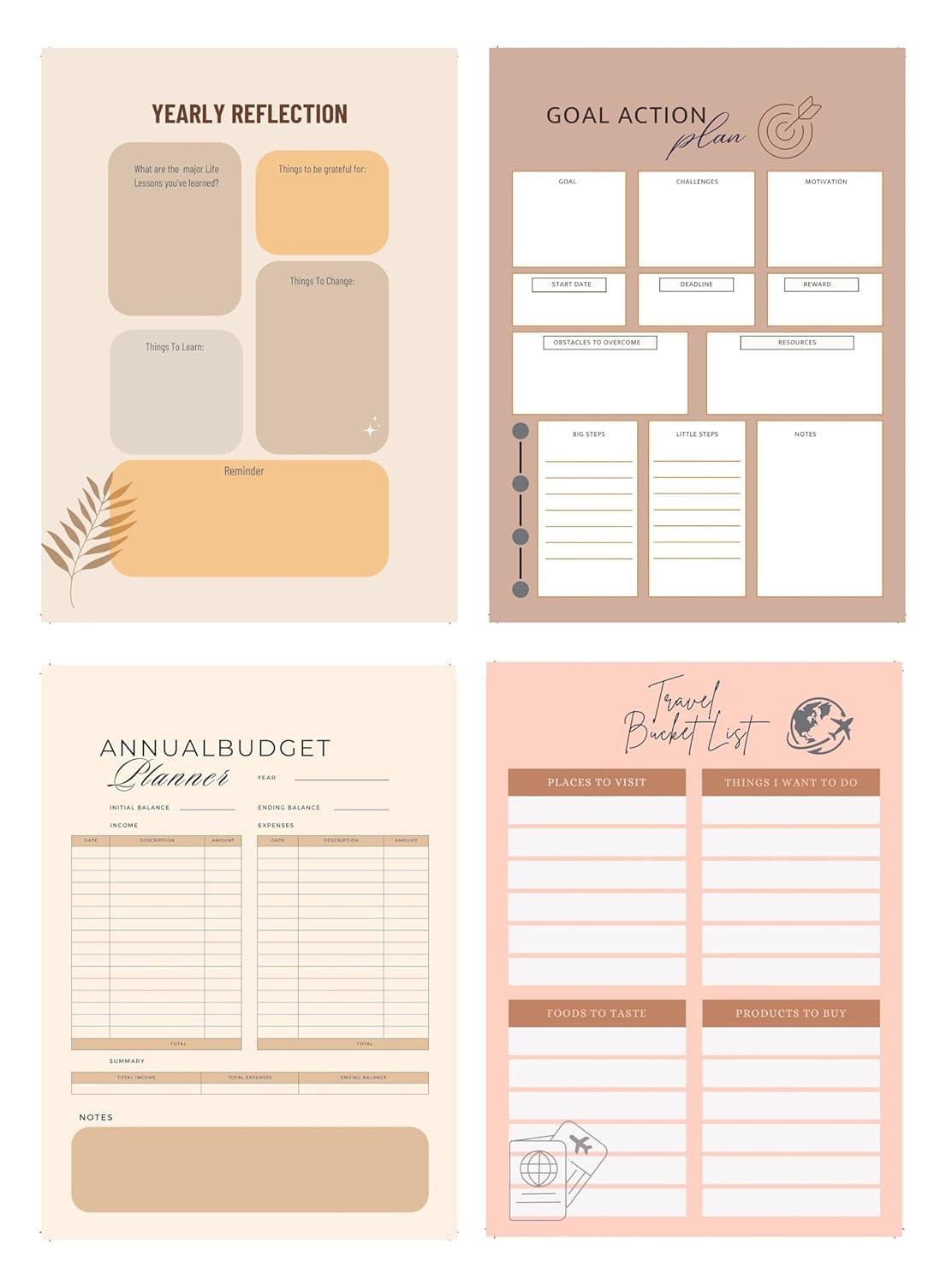 Craft Your Year- Embark On Your Planning Journey With A Clear Purpose. This Planner Commences With Carefully Designed Utility Pages That Harmonize With Your Dreams And Goals. Set The Course For Your Year By Articulating Your Top 5 Goals, Strategizing Your Skill Development, Curating A Wishlist Of Desirable Items, And Visualizing Your Adventures On The Horizon. Dive Into Planning With Intentionality. The Planner Opens With Utility Pages Meticulously Crafted To Align With Your Aspirations. Define Your Top 5 Goals For The Year, Chart The Path To Acquiring New Skills, Curate Your Wishlist Of Things To Buy, And Envision Exciting Places To Visit.