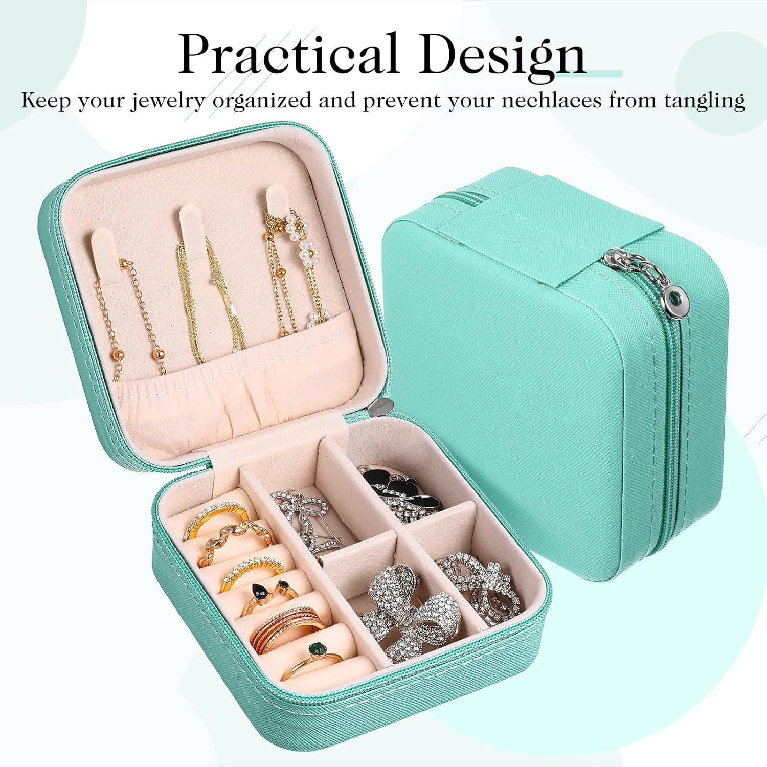 Detailed Size Information: our compact jewelry travel case is approx. 10 x 10 x 5 cm/ 4 x 4 x 2 inches; The small size can be easily put into the bags without taking up too much space, suitable for jewelry storage when traveling or going out