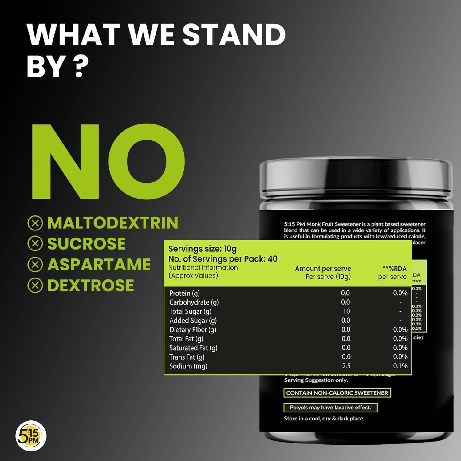 ✅ 𝟏𝟎𝟎% 𝐀𝐥𝐥-𝐍𝐀𝐓𝐔𝐑𝐀𝐋 𝐌𝐎𝐍𝐊𝐅𝐑𝐔𝐈𝐓 𝐒𝐖𝐄𝐄𝐓𝐍𝐄𝐑 (𝐌𝐎𝐍𝐊 𝐒𝐔𝐆𝐀𝐑): Our 5:15 PM Monk Fruit Sugar Sweetener is a balanced blend of monk fruit extract and erythritol offering a clean, sweet taste without bitterness. While some prefer monk fruit sweetener without erythritol, our version with erythritol is more versatile, has better texture, and monk sugar works perfectly for baking, beverages, and everyday use monkfruit sweetner without any artificial additives or aftertaste.
