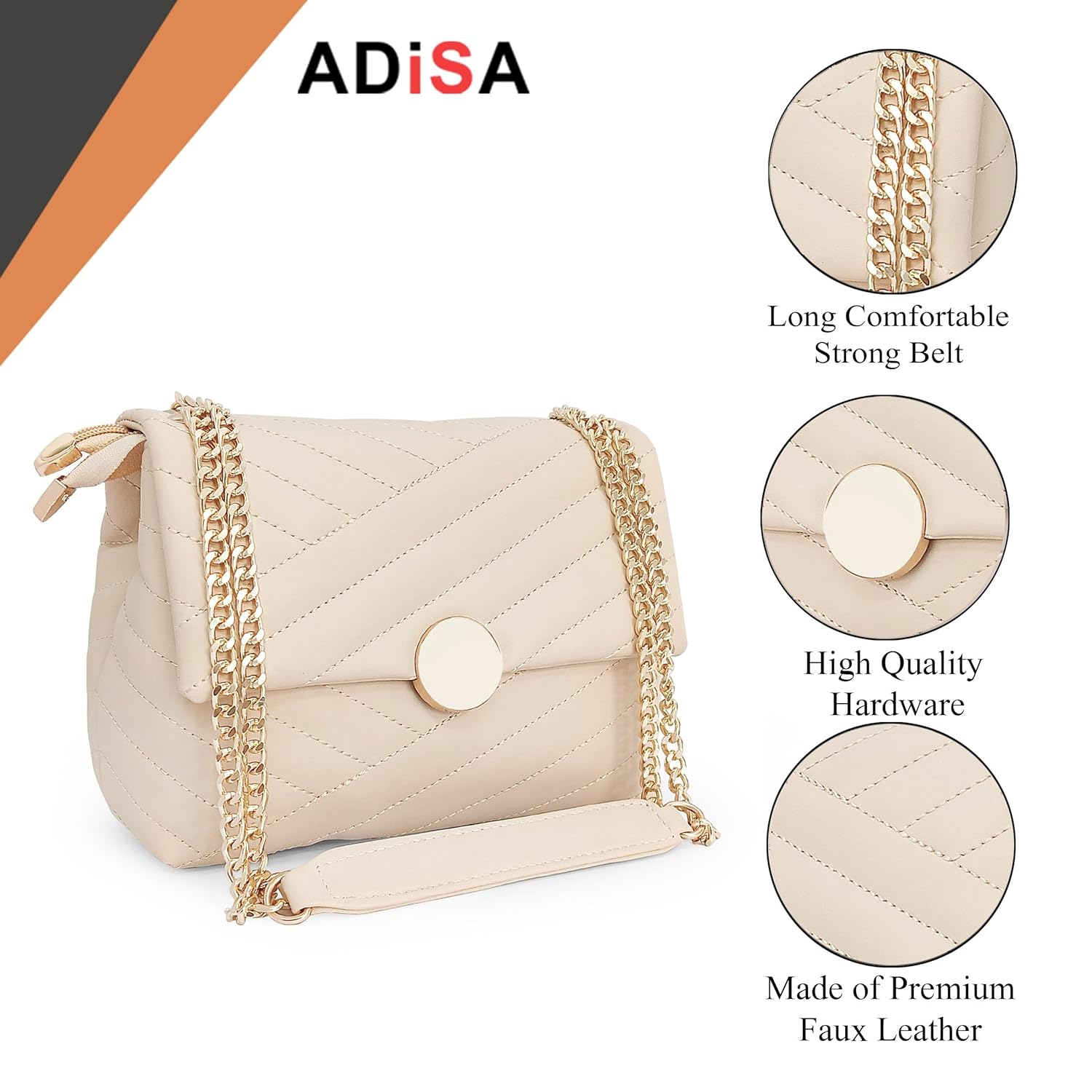 ADISA Women’s Girls Quilted Cross Body Sling Bag with Gold Chain (SL5136)