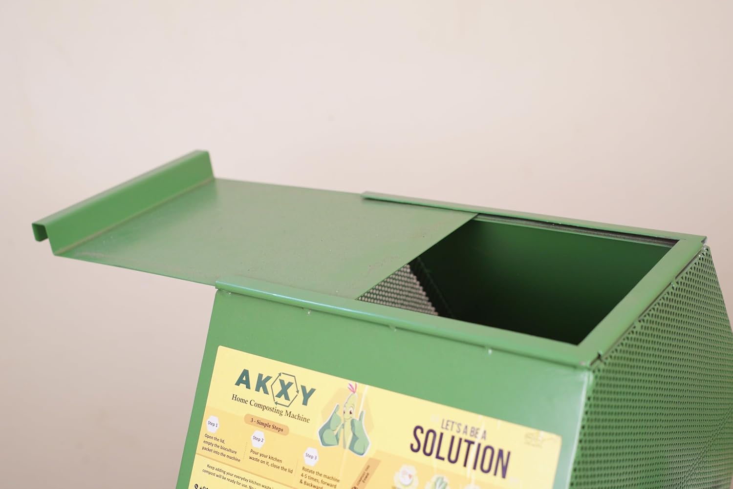 Durable construction: The AKXY Home Composting Machine Green (MS-30, Powder Coated) is built to last, with the Green model featuring a powder-coated finish for enhanced durability, while the Shine model boasts a sleek stainless steel construction.