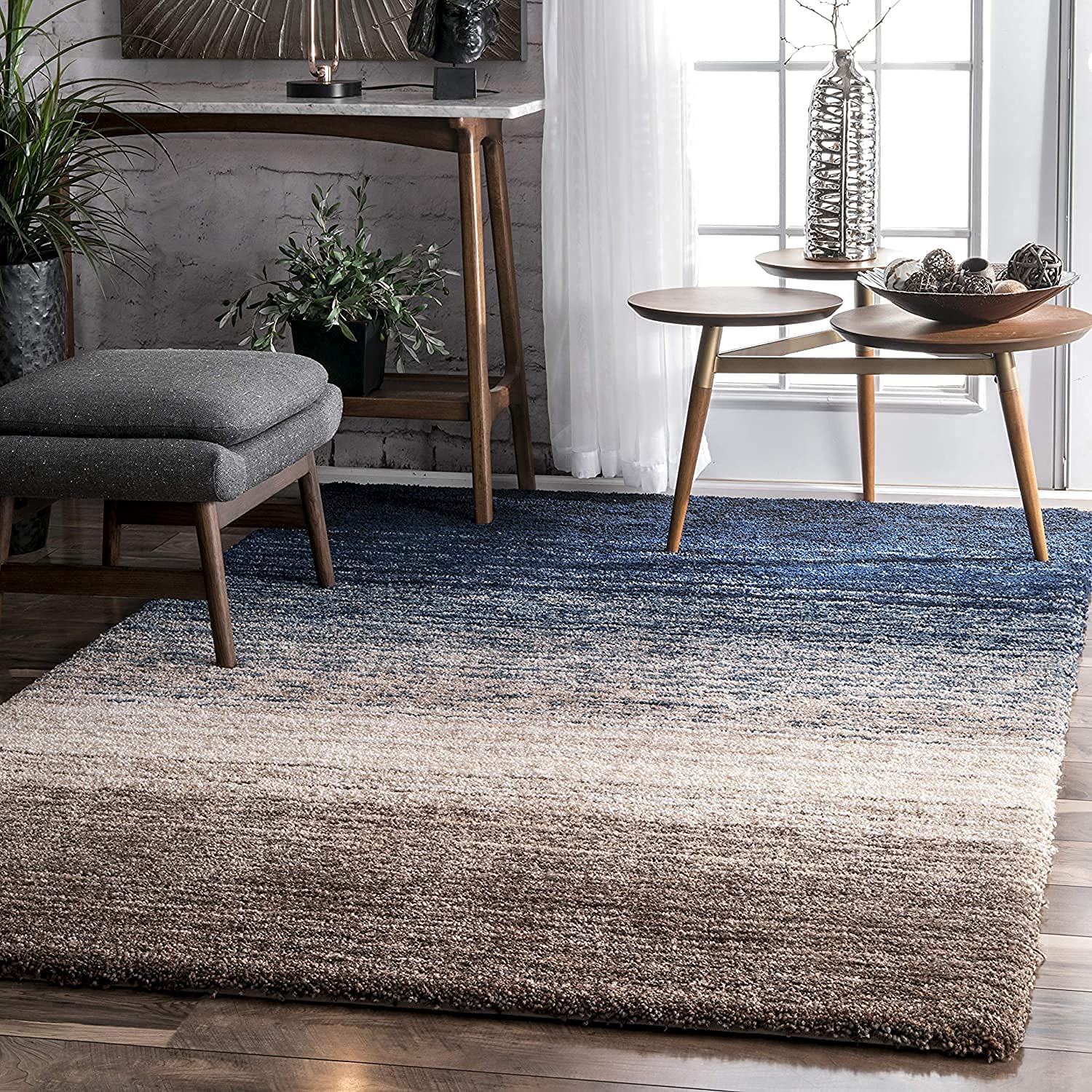 Blue Shaded Silk Touch Haze Shaggy Carpet for Living Room Rectangular; Area Rugs for Bedroom Floor Rug 3X5 Feet