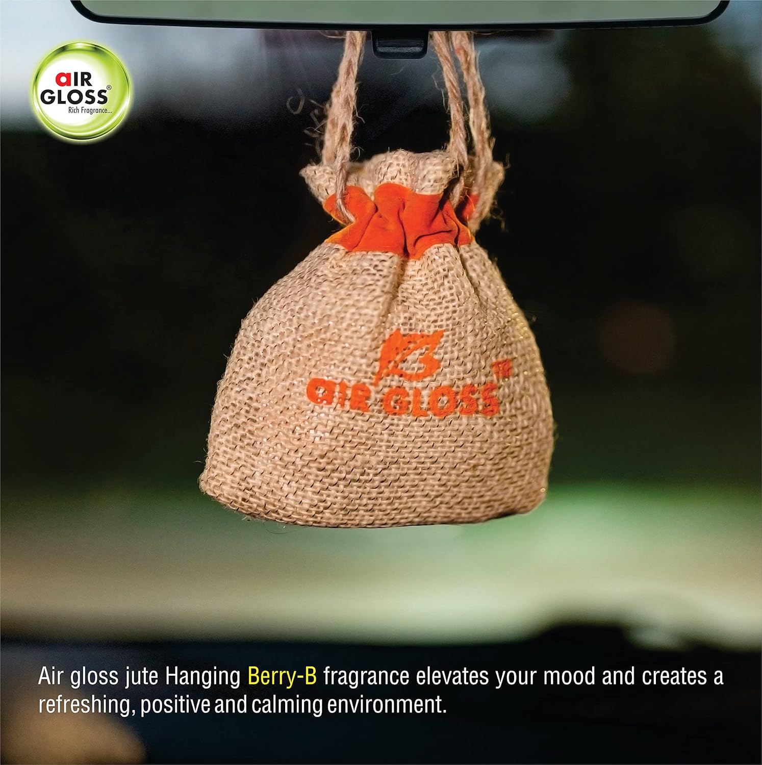 The Air Gloss Berry-B Fragrance in Jute Hanging Freshener is infused with a fresh and fruity blueberry scent that will uplift your mood and create a relaxing atmosphere in your car, home, or office. This eco-friendly freshener combines the natural power of jute with the refreshing fragrance of Berry-B to create an aromatic experience like no other.