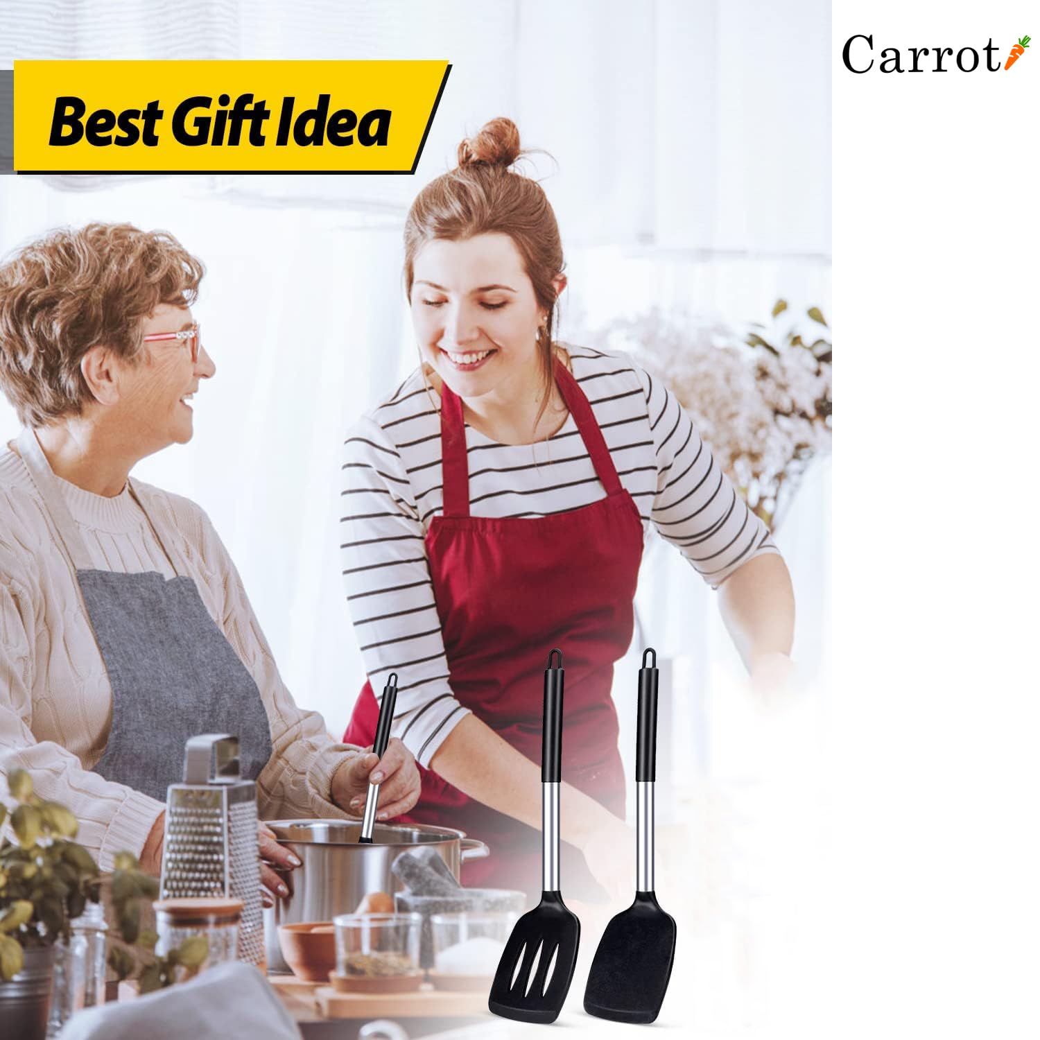 JUST WANT TO PROVIDE THE BEST FOY YOU : Life comes from details. Carrot Kitchenware insists on controlling the details. The modern gray color can be freely matched with different kitchen styles. The soft food-grade silicone is designed for noise-free cooking. Thin and flexible edge,is ideal for flipping.