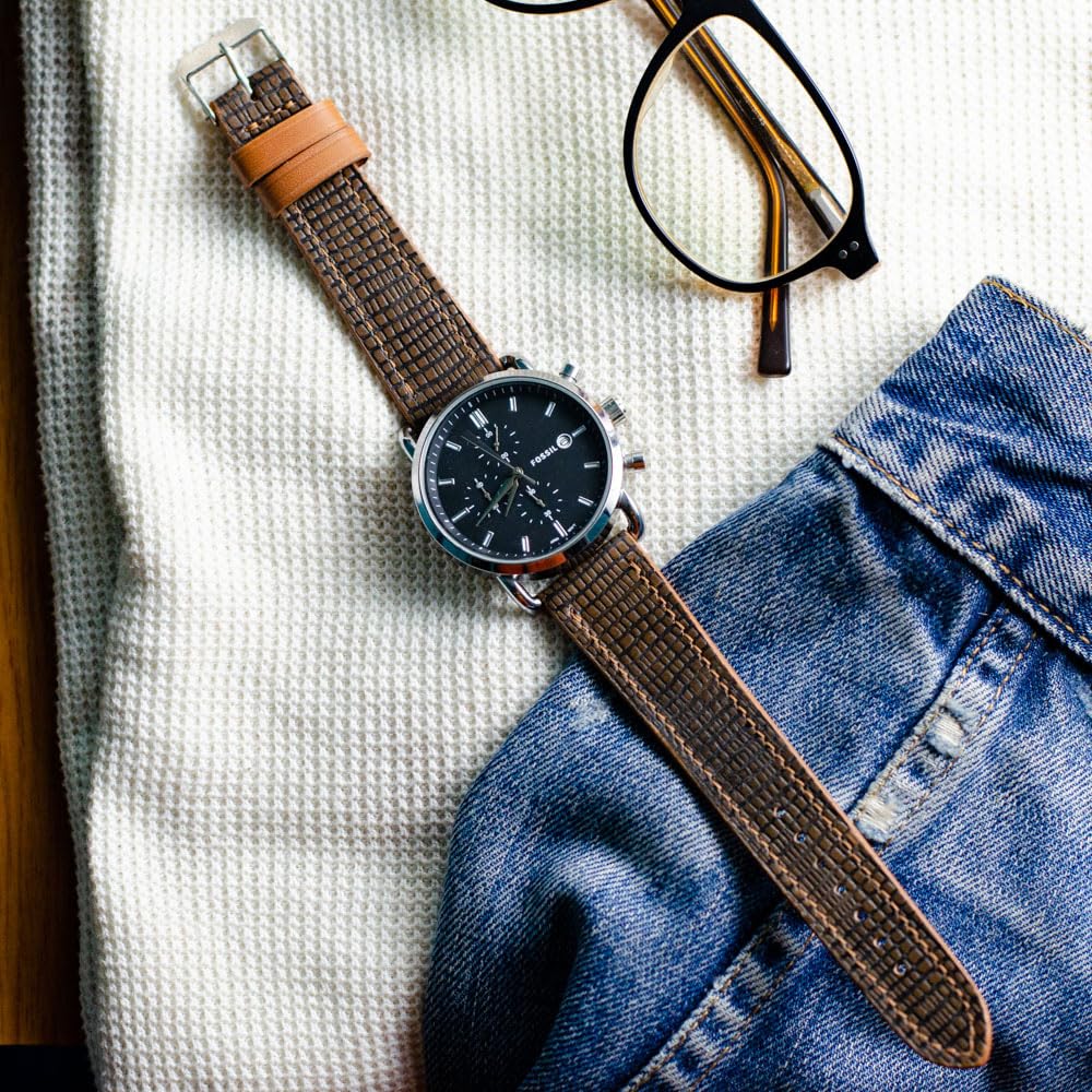 Strap up a classic reptilian charm with this lizzard pattern embossed watch strap. Tapered smoothly like a racing tail end. Complemented by muted open-stitching for a modern look. Designed to go well with most watches, the sleek leather strap is a great change for a new watch style. Every Bangtail watch strap is made using the best quality original leather. Handcrafted by artisans in Calcutta.