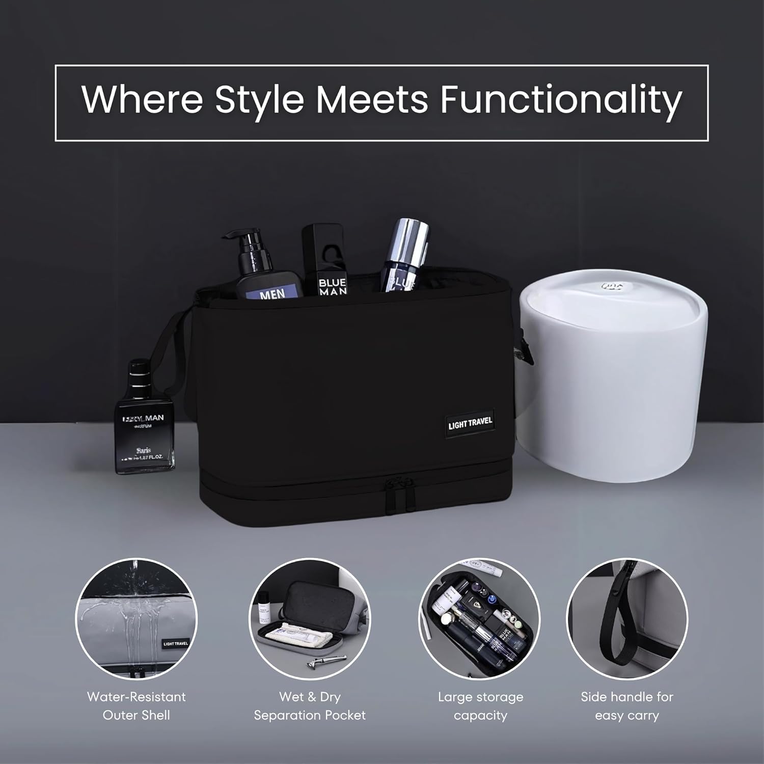 Quick Access & Easy Carry :Smart side handle and double zipper design for quick access and easy carryperfect for any toiletry bag for men travel kit. Zippers are smooth, strong, and designed for frequent everyday handling.
