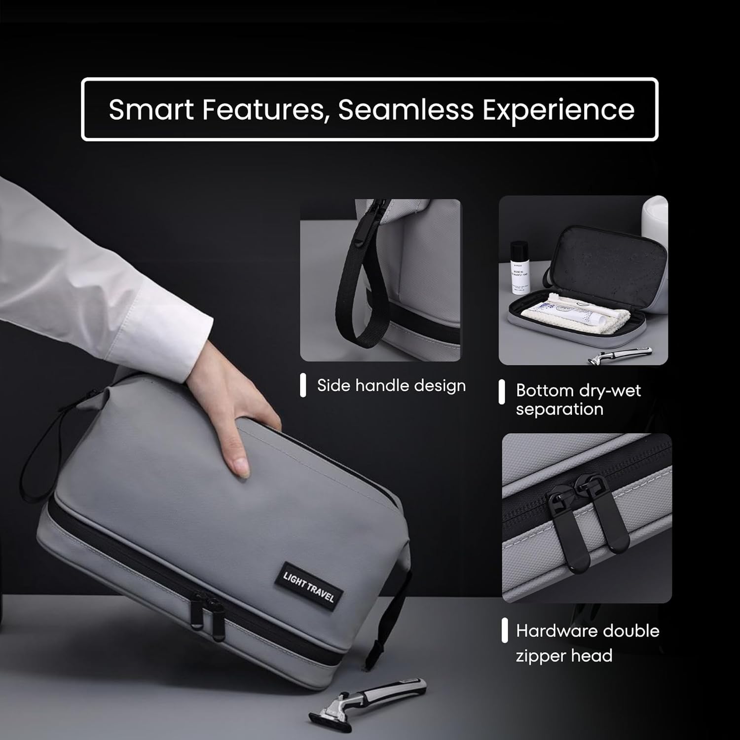 Quick Access & Easy Carry: Smart side handle and double zipper design for quick access and easy carryperfect for any toiletry bag for men travel kit. Zippers are smooth, strong, and designed for frequent everyday handling.