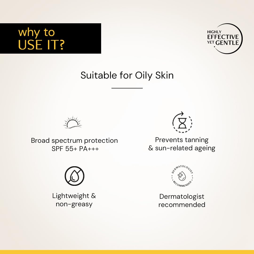 SPF 50 + BEST SUNSCREEN : The lightweight Gel contains UV filters that absorbs them and protects the skin from harmful radiations.