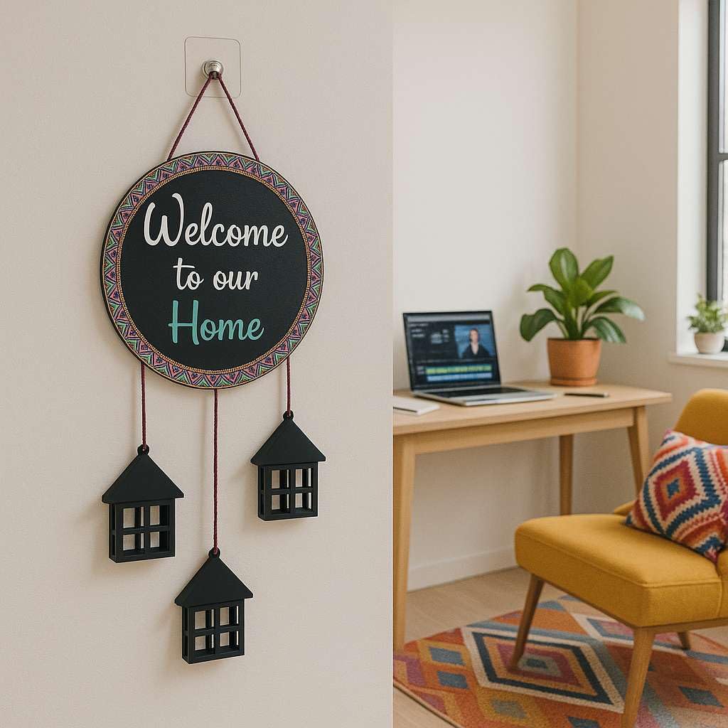 Welcome warmth and charm into your space with the DECORIQUE Wooden Wall Hanging Welcome Sign, a beautifully handcrafted quote board designed to enhance your home’s entrance and interiors. Made with durable and good-quality wood, this rustic wall art piece is more than just decoration—it’s a heartfelt message that makes guests feel truly at home. Crafted in a minimalist yet boho-rustic style, this wooden welcome sign board features an elegant quote that fits seamlessly with both traditional and modern home aesthetics. Whether you’re decorating your living room, hallway, front door, office, or balcony, this wall hanging is the perfect addition to elevate your space. Perfect for use in home entrance wall decor, it instantly sets a welcoming tone and adds a personalized touch to your interiors. Lightweight and easy to hang, this home wall decor item is suitable for apartments, bungalows, offices, or even café spaces. Its neutral tones and rustic finish blend effortlessly with various color palettes and furniture styles. Looking for a meaningful housewarming gift? This decorative wall quote sign is a thoughtful and memorable choice for friends, family, newlyweds, or anyone moving into a new home. It’s also an ideal pick for festive gifting during Diwali, Christmas, or New Year. Bring home this elegant DECORIQUE wall hanger and turn a blank wall into a welcoming focal point. It’s more than decor—it’s an emotion that celebrates love, family, and togetherness.