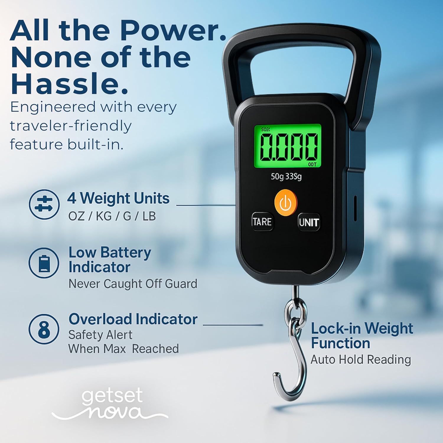 Luggage Weighing Machine – Smart Chipset & 4 Unit Conversion Our digital weighing machine for luggage includes 4 unit conversion (kg/lb/oz/g), tare function, and auto lock features. Ideal luggage weighing machine for travelers and daily home use