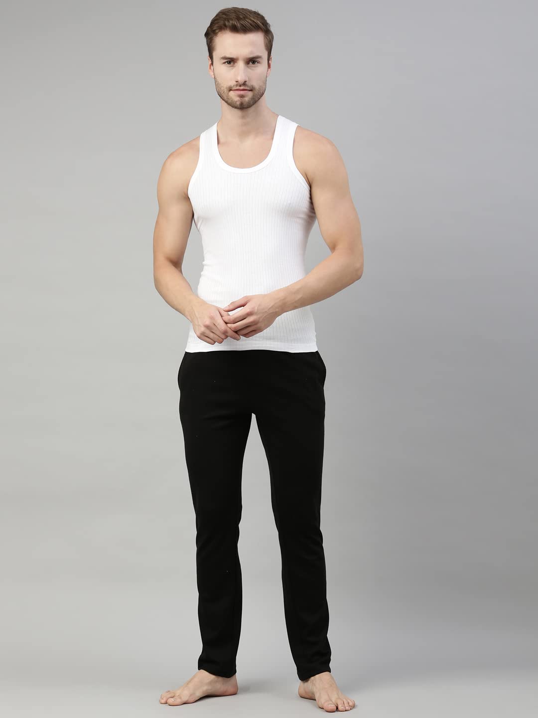 Be comfortable underneath a dress shirt by wearing these vests for men by Dixcy Scott. Made from quality combed cotton, the fabric is sweat absorbent, offers greater durability and makes the vests for men less prone to fraying and tearing. These mens vests come with a snug body fit that compliments your physique and avoids shifting or excess bunching when wearing the mens vest under a shirt. The contoured armholes in this mens vest offer comfort movement while the seamless side body construction reduces irritations, to keep you at ease throughout the day. This vest for men are also recognized as baniyan for men to be paired with ethnic wear.