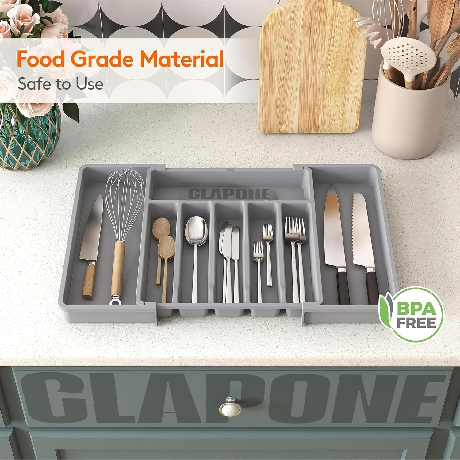 Large Capacity & Expandable Design: Maximize your drawer space with this spacious silverware organizer. Featuring two smooth-sliding expandable panels on each side, it easily adjusts to fit more cutlery, utensils, and kitchen tools—keeping everything neatly sorted and within reach.