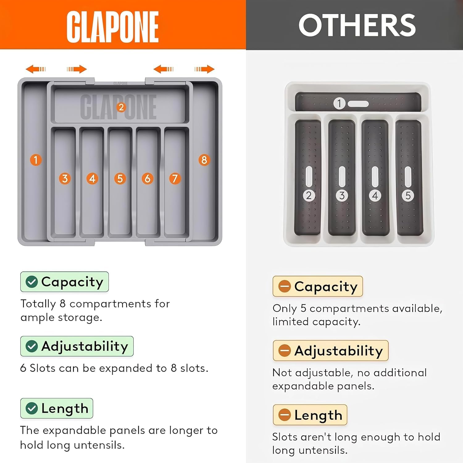 Smart Sorting with 8 Compartments: Featuring 8 thoughtfully designed compartments in 3 different sizes, this kitchen drawer organizer makes it easy to sort, identify, and access your silverware and utensils. Quickly find what you need—no more digging through messy drawers.