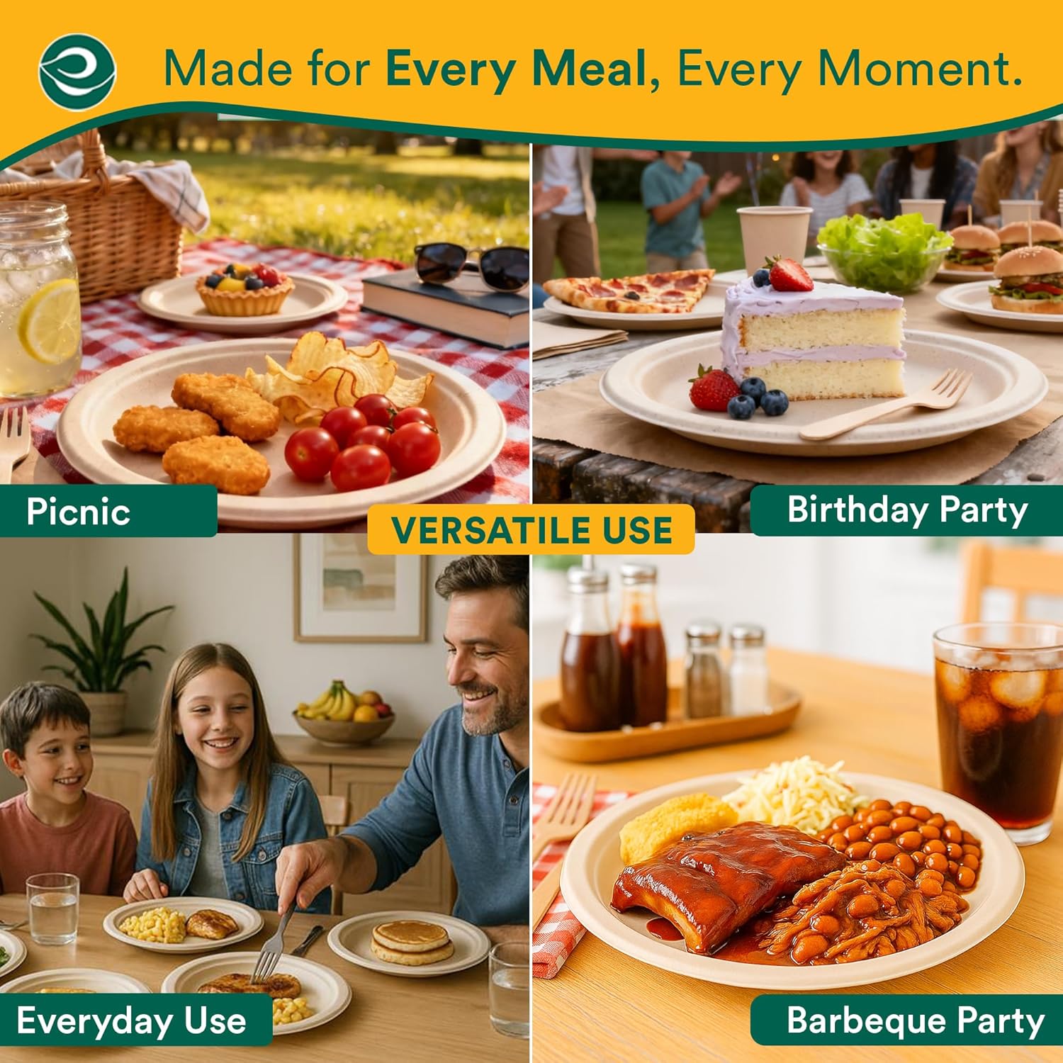 Easy & Guilt-Free Disposal: After every use, simply toss these compostable plates into a compost bin. They break down naturally over time, helping you host joyful, low-waste gatherings with minimal cleanup.