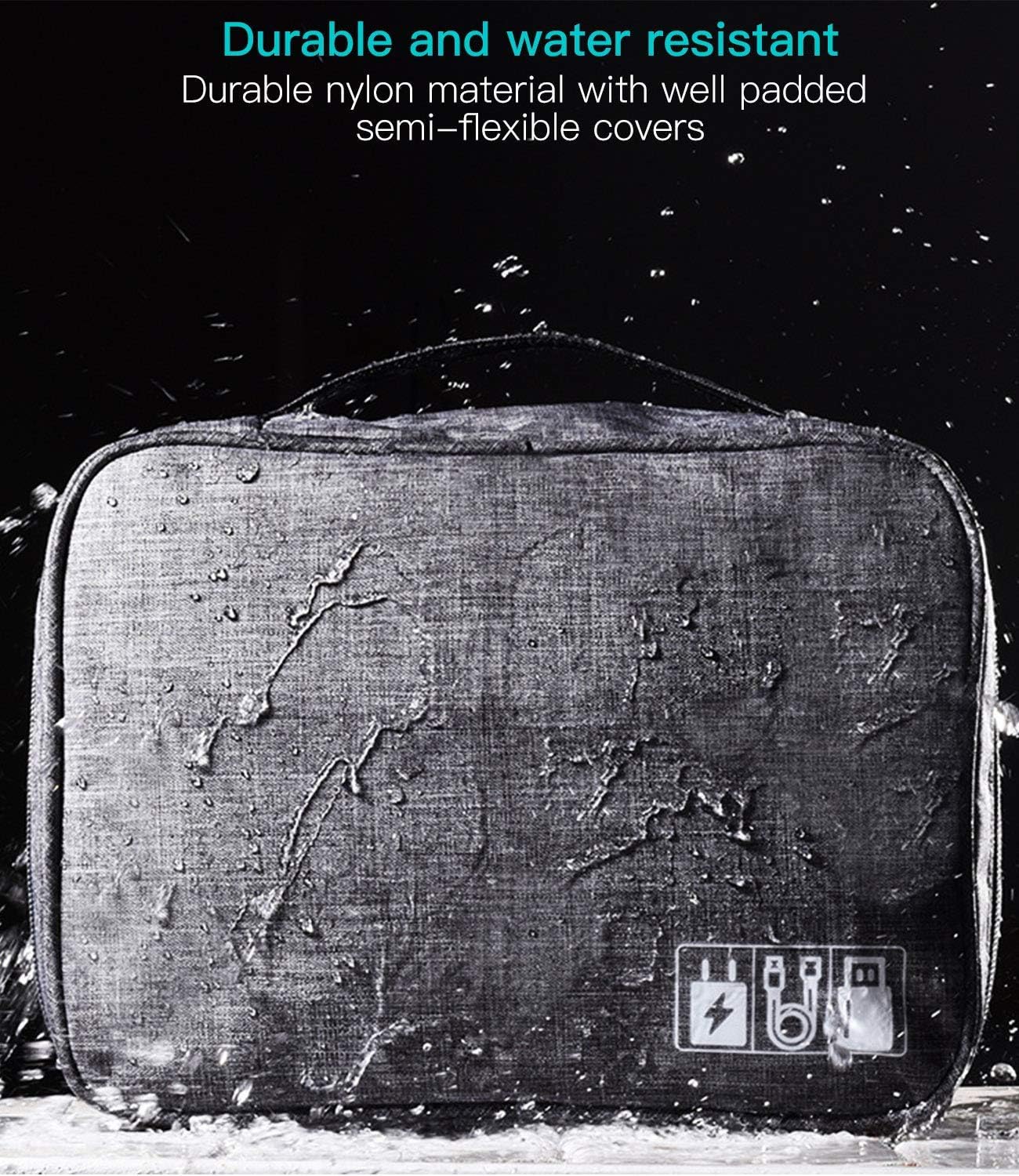 Durable, Waterproof Construction: Made from high-quality, water-resistant fabric, this organizer bag is designed to protect your electronics from moisture, dust, and accidental spills. Rest easy knowing your accessories are safe inside, even in less-than-ideal weather conditions.
