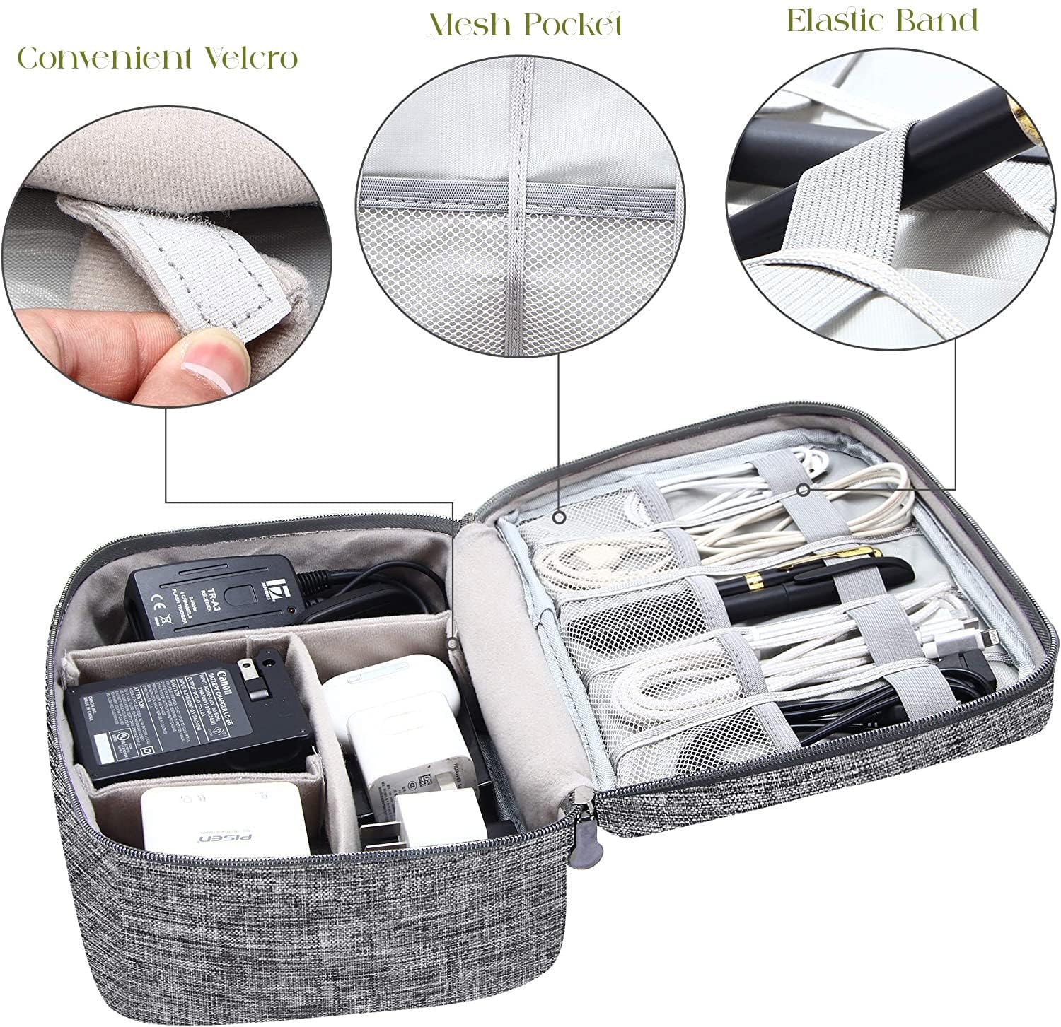 Universal Compatibility: Whether you’re storing smartphone accessories, laptop chargers, or camera gear, this versatile bag fits a wide range of electronics and accessories, making it a great choice for tech enthusiasts, students, business professionals, or travelers.