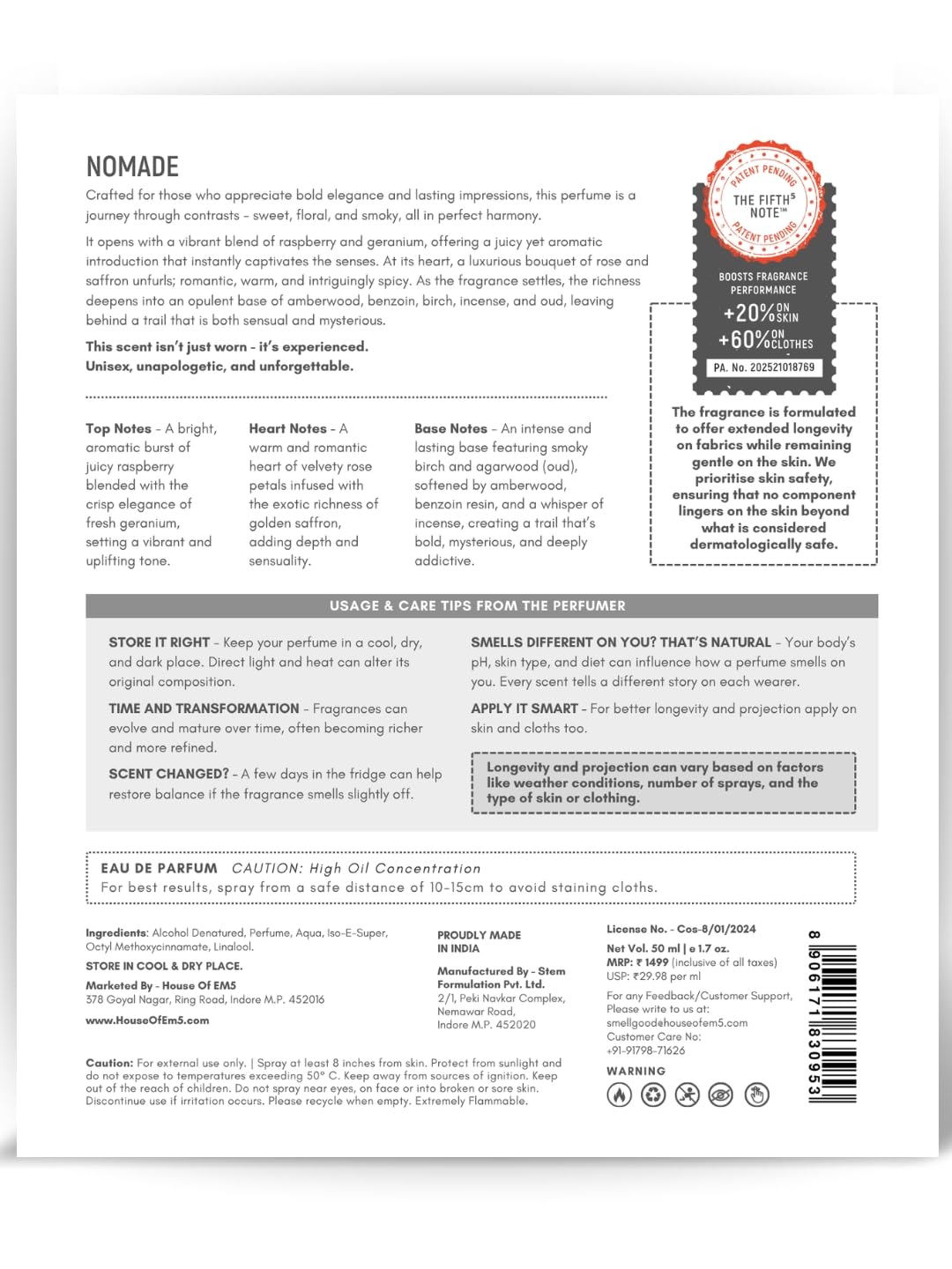 Packer : Stem Formulation Pvt. Ltd., 2/2 Nayta Mundla, Nemawar road, Indore M.P. 452020, Customer Support: +91-91798-71626 (WhatsApp), em5support@indiainfotech.com