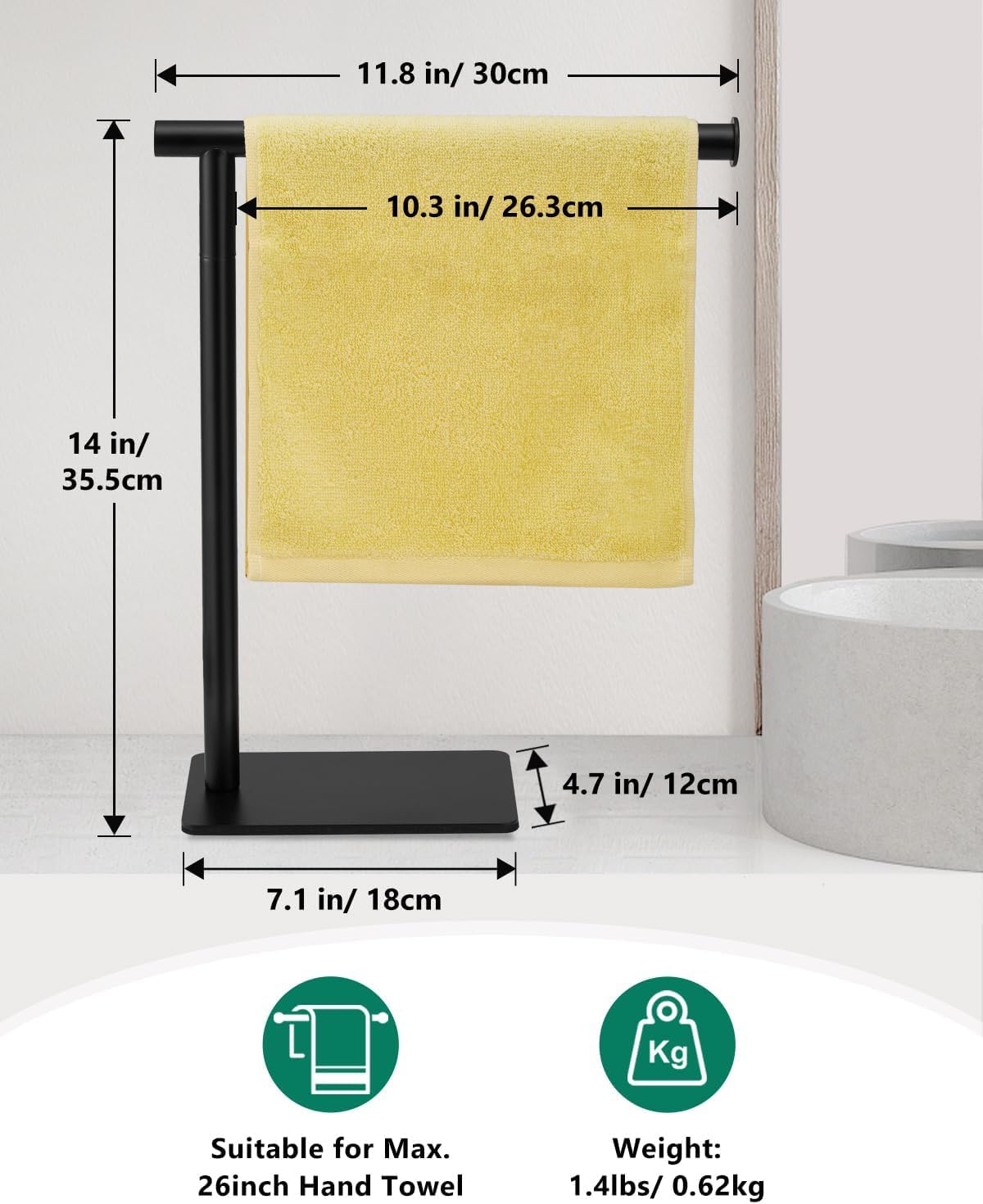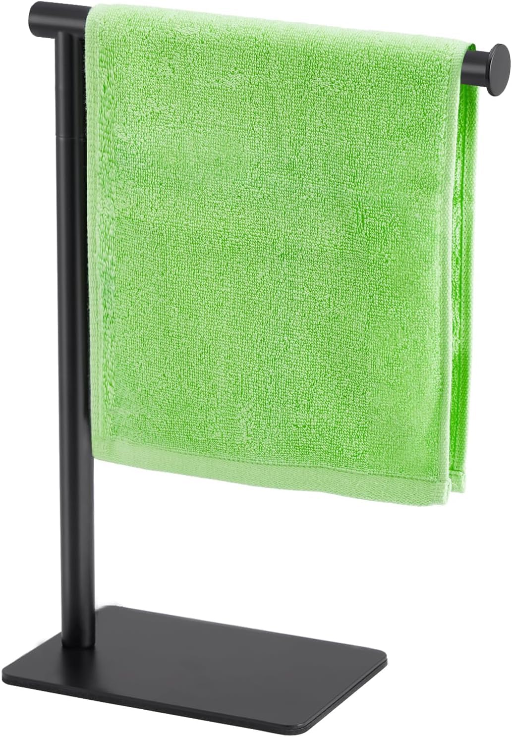 Waterproof & Rust-Proof – Bathroom hand towel holder is constructed of superior iron material, protects against corrosion & rust, suitable for humid environments such as the bathroom and kitchen. Black coating surface is built to resist daily scratches. Freestanding & Anti-Slip – T-Shape towel rack is designed for free standing without drilling holes to damage the wall. The base is equipped with non-slip pads, it can easily place the bathroom towel holder on any countertop without tipping it over.
