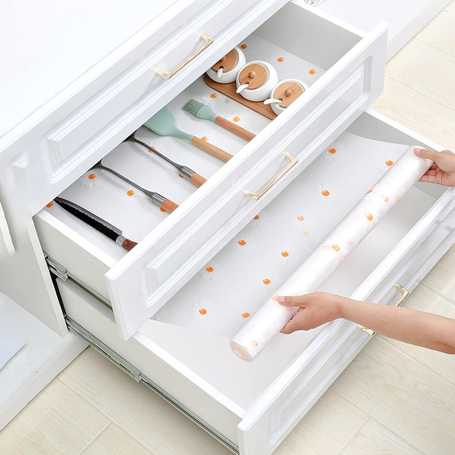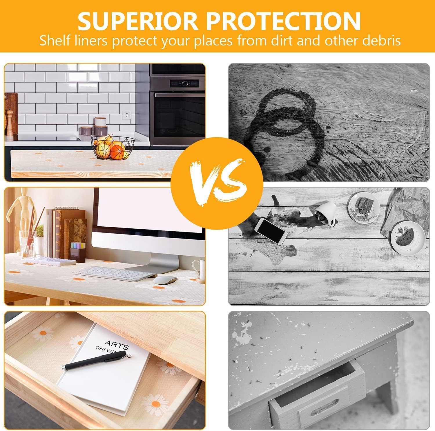 【Easy to Install & DIY】: ESPERO kitchen cabinet liner is very convenient to use, you can easily cut out the size you need with scissors or DIY into various patterns you want, not only to protect the drawer or table surface, but also to decorate the house. Is the best choice for home life.