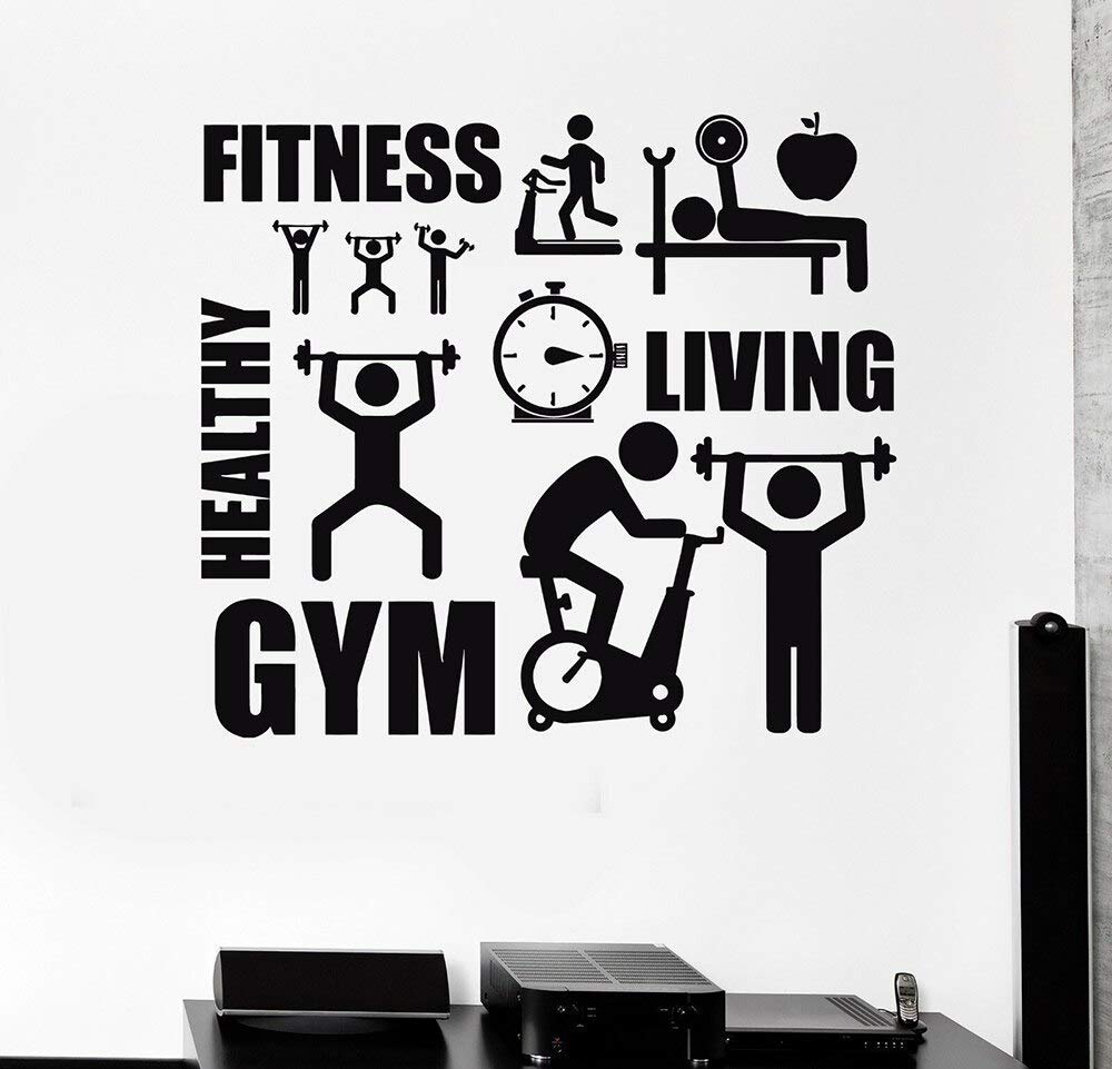 Fitness Wall Decal Room Decor Healthy Lifestyle Sport Motivation Gym Stickers L x H 57 cm x 63 cm