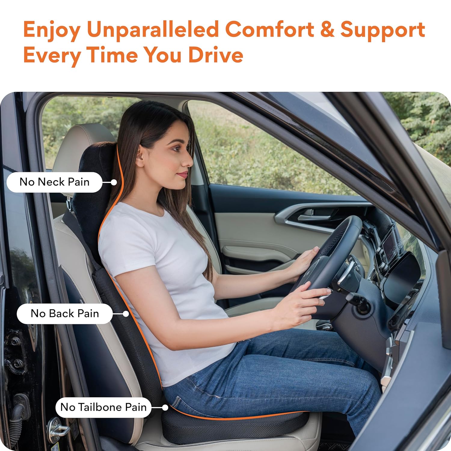 ✅ ERGONOMIC FULL-BODY SUPPORT: Supports neck, back, and tailbone to improve posture and reduce fatigue while driving.