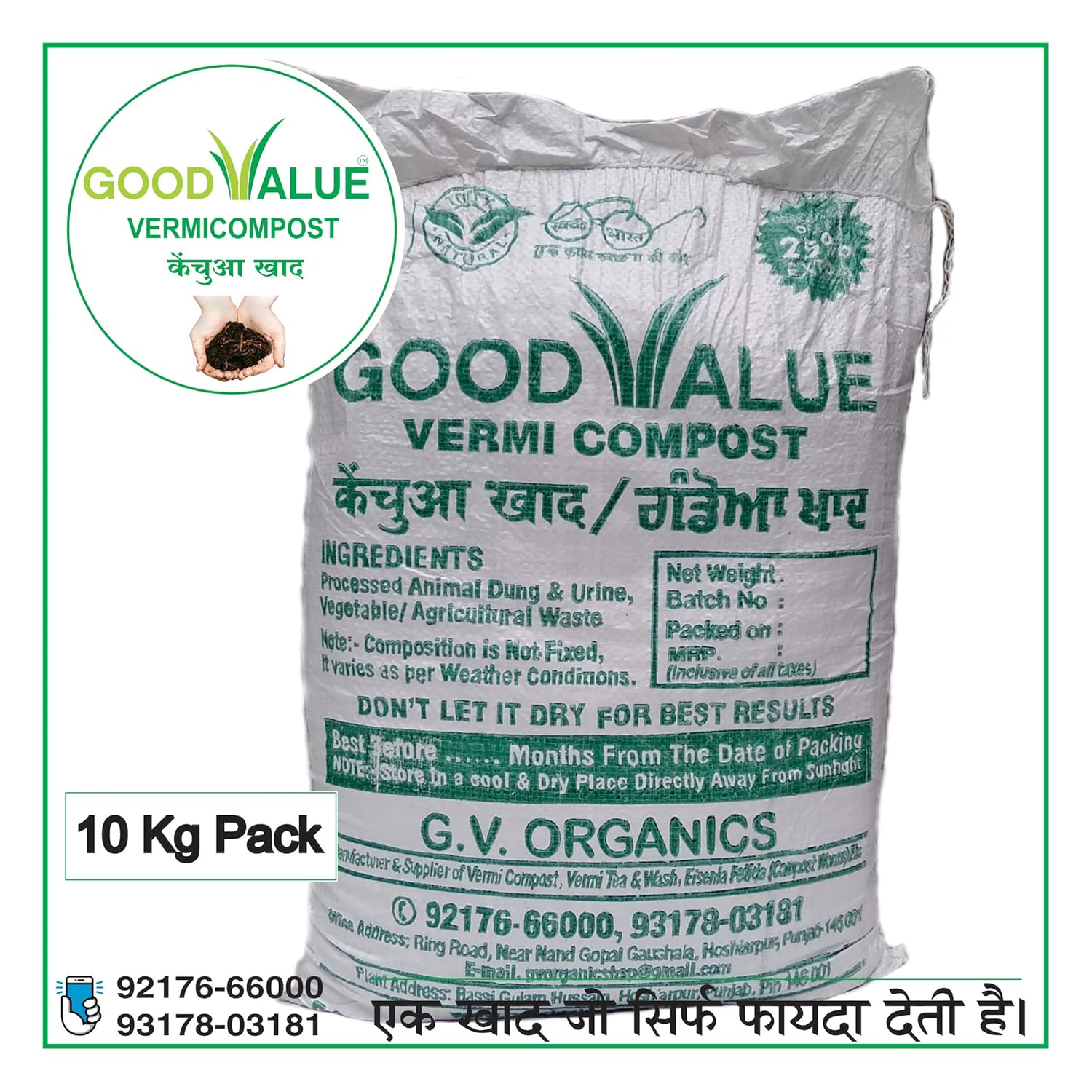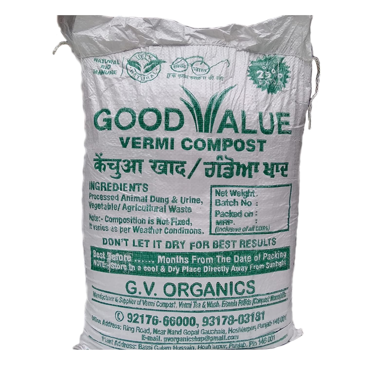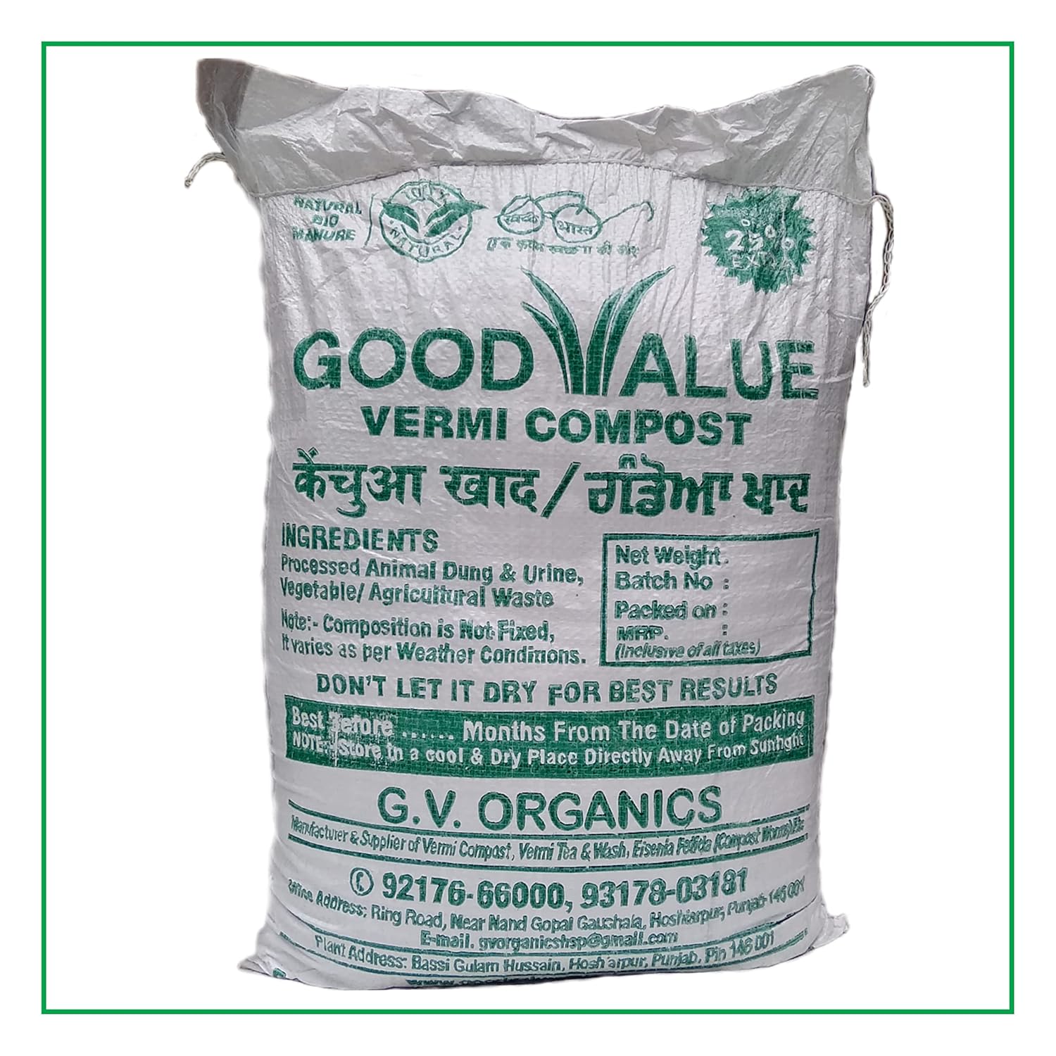 Organic :- The most important aspect of compost produced by earthworms is that it is 100% organic. It is the first step to switch over to organic farming. There are no harmful chemicals and it does not need to be mixed with anything.