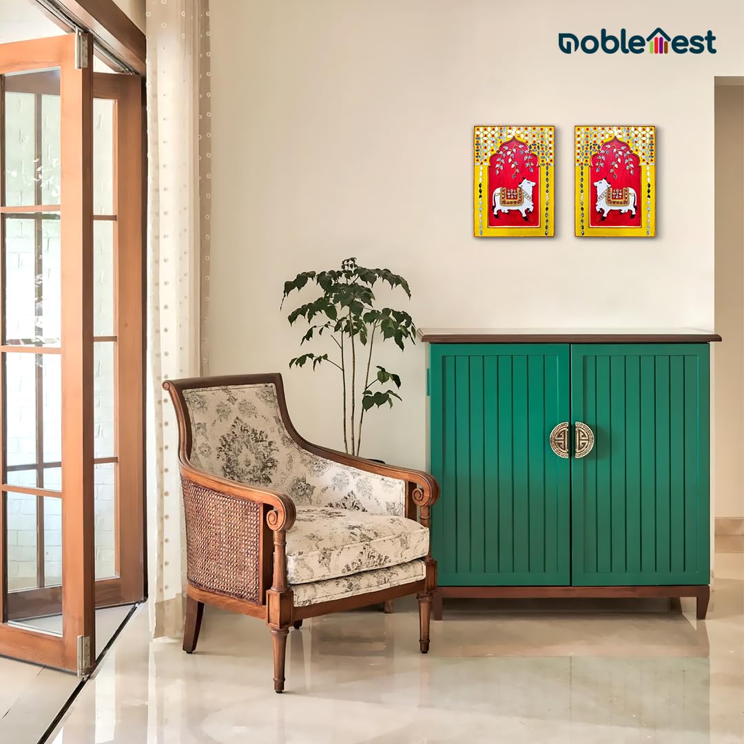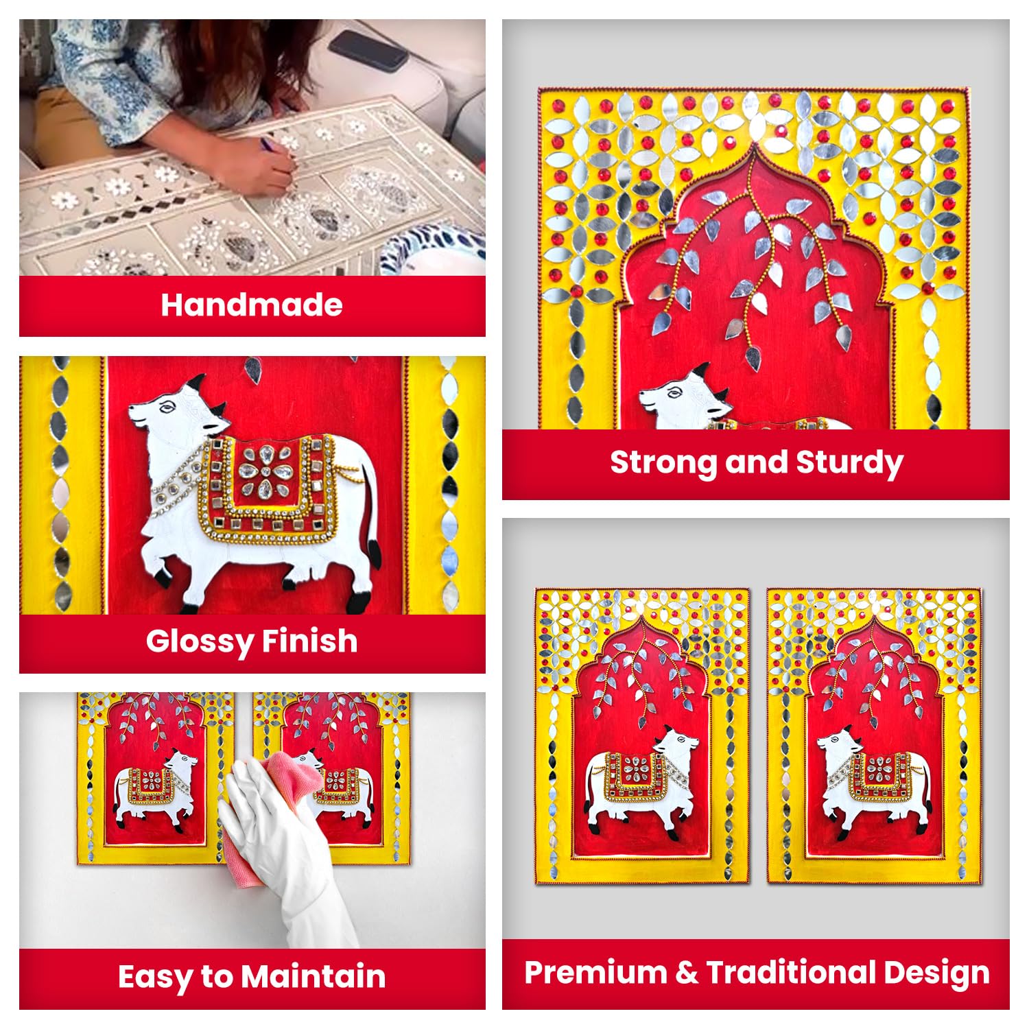 Package Contain: This package includes a set of 2 handmade Pichwai wall hanging, crafted with meticulous attention to detail using high-quality colors. Perfect for traditional home décor, this piece adds a touch of elegance to any living space. Ideal for wall decoration in living rooms, it enhances the ambiance and serves as a distinctive decorative item for your home.