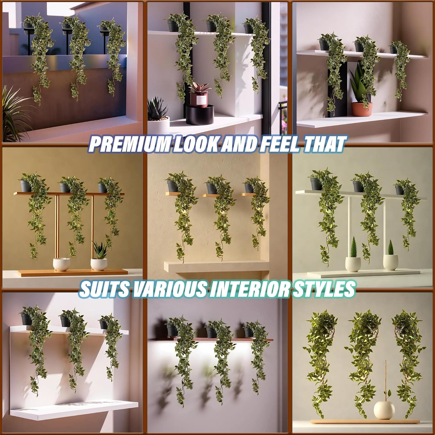 You can use plant hangers to hang these plants in the living room or bedroom. These vivid and lifelike greenery plants can be well matched with boho, farmhouse, country or modern style.