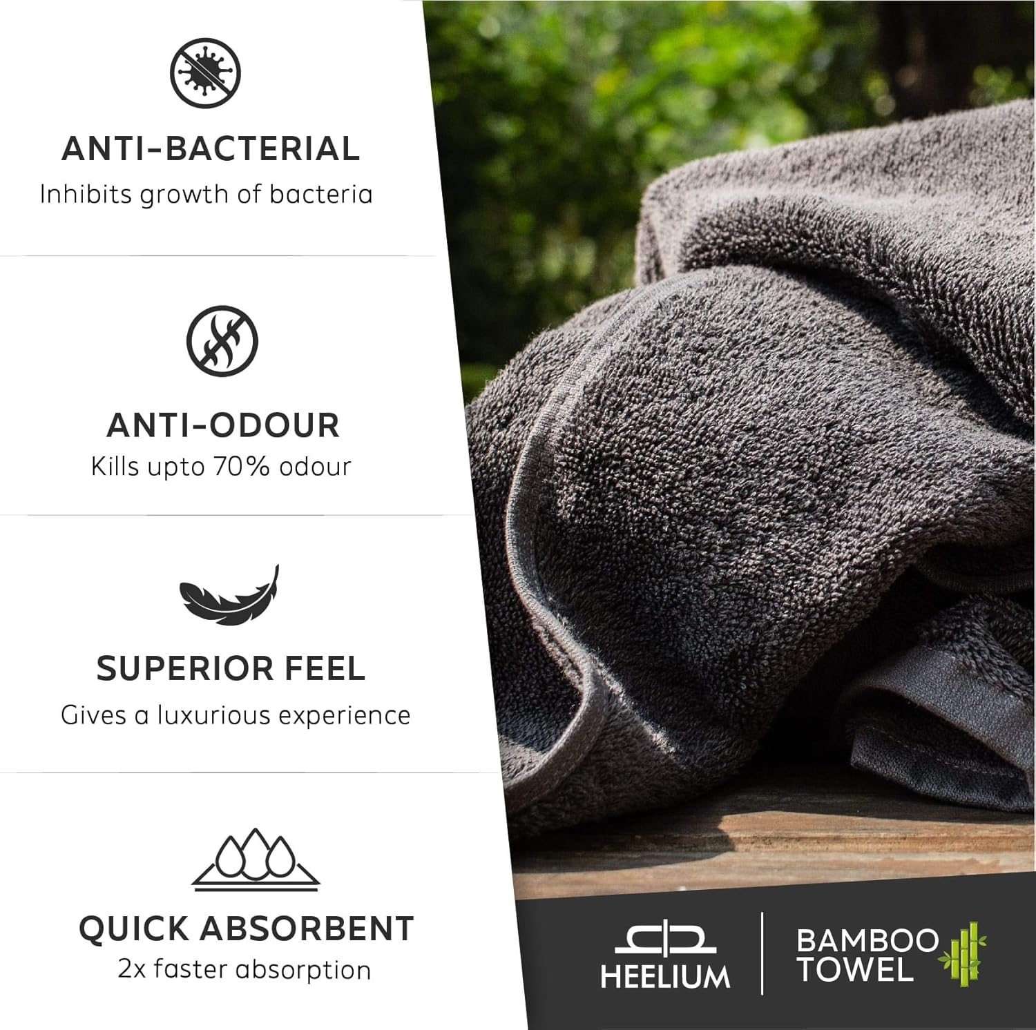HEELIUM Bamboo Bath Towel | Ultra Absorbent | 3X Softer Than Cotton Towels | 140 x 70 cm – 600 GSM | Pack of 1 – Grey