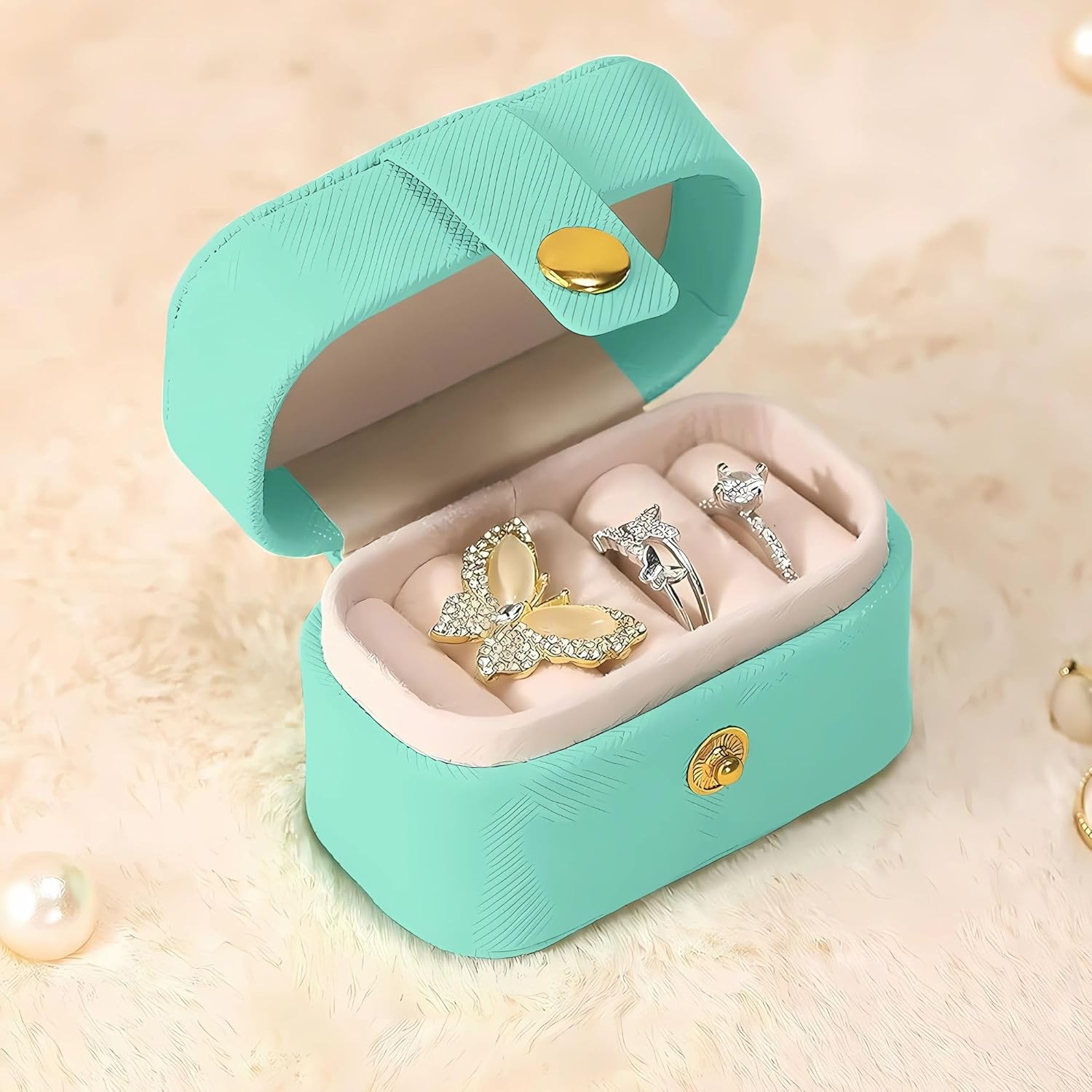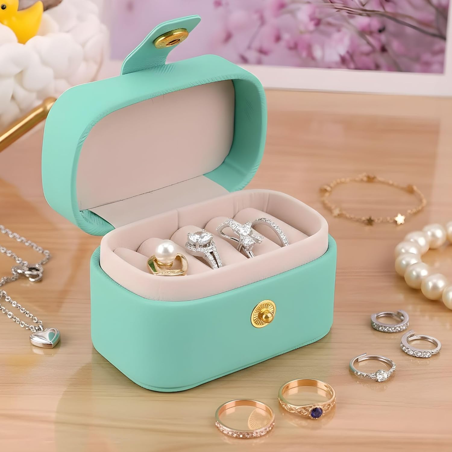 Versatile Storage Solution in Teal Green – Stylish and Compact Jewelry Case for Rings, Earrings & More, Perfect for Travel or Daily Use.