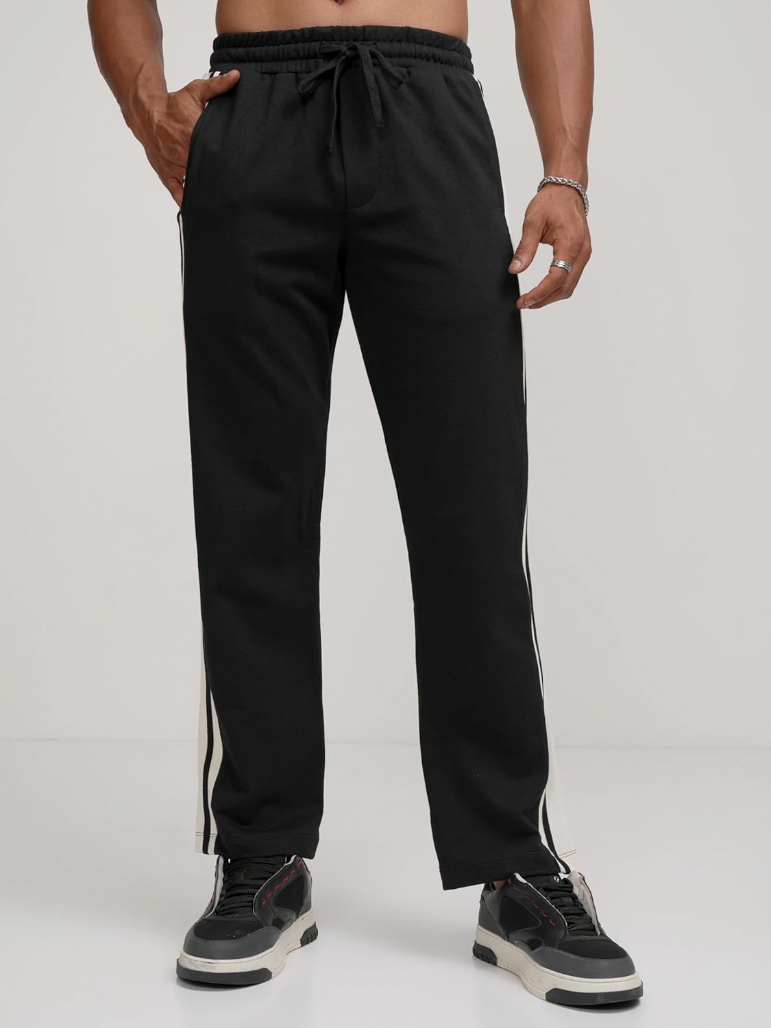 Customers find these track pants comfortable and stylish, with good quality fabric and a perfect fit. They appreciate the value for money, and one customer mentions they are ideal for both workouts and casual wear.