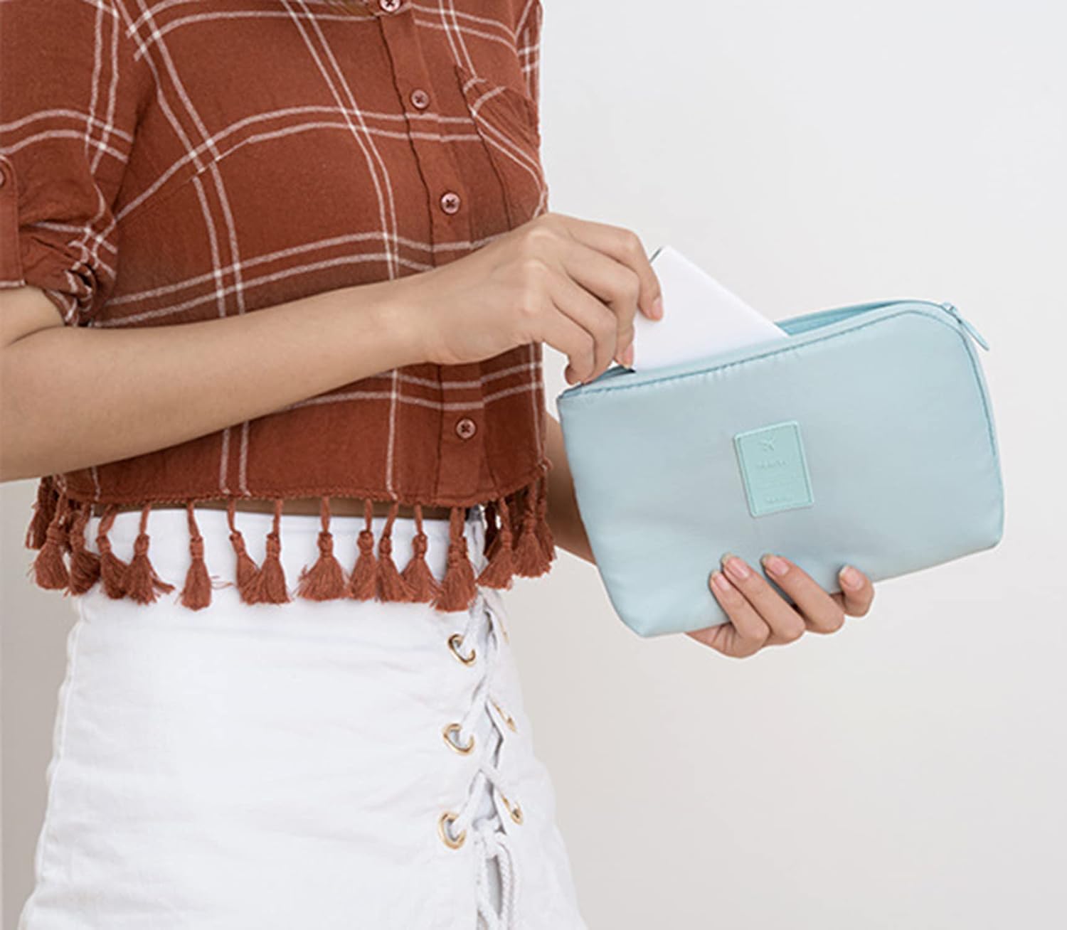 With 3 separate pockets,you could classify your items like cosmetics,key,cellphone,charger and etc.