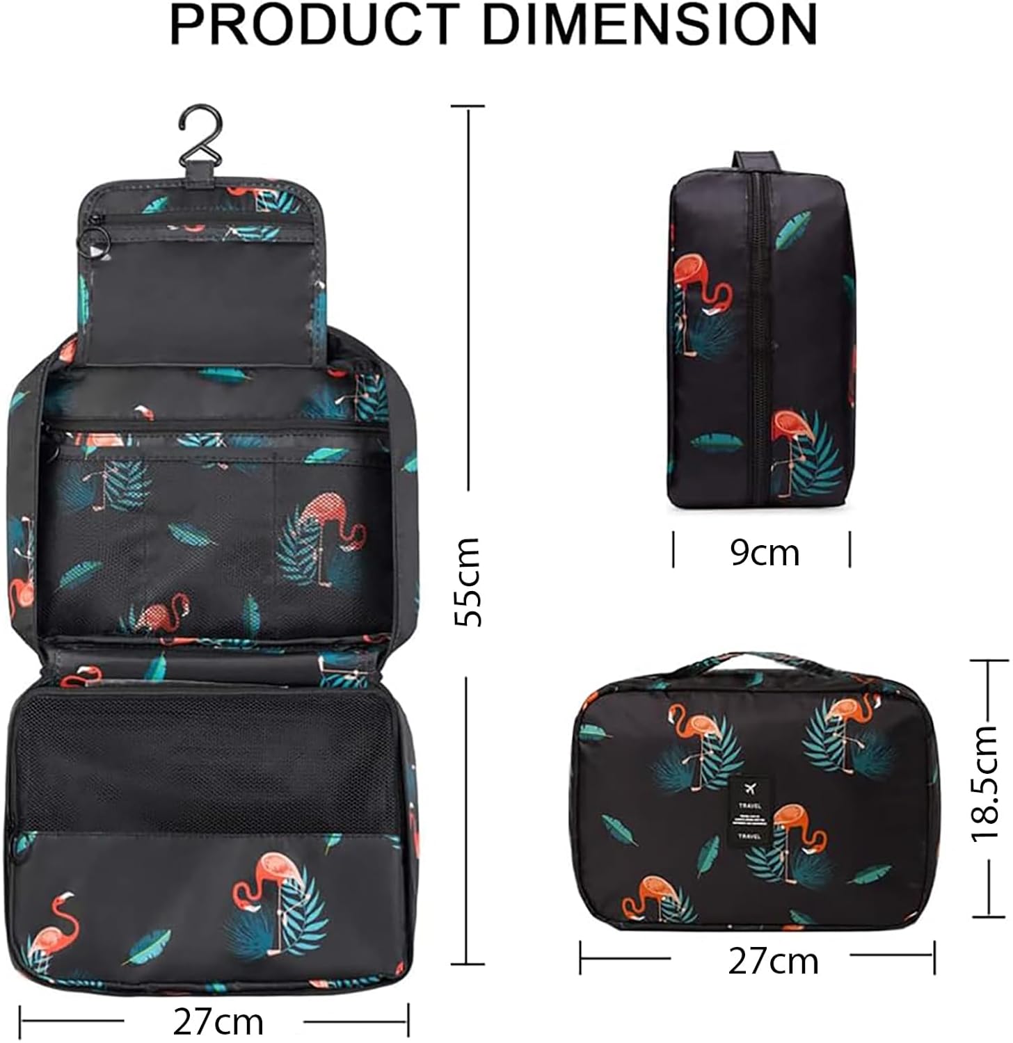 House of Quirk Polyester Hanging Travel Toiletry Kit Bag Cosmetic Makeup Bag Organizer For Women And Girls (Black Flamingo),W-18.5 Cm, Large