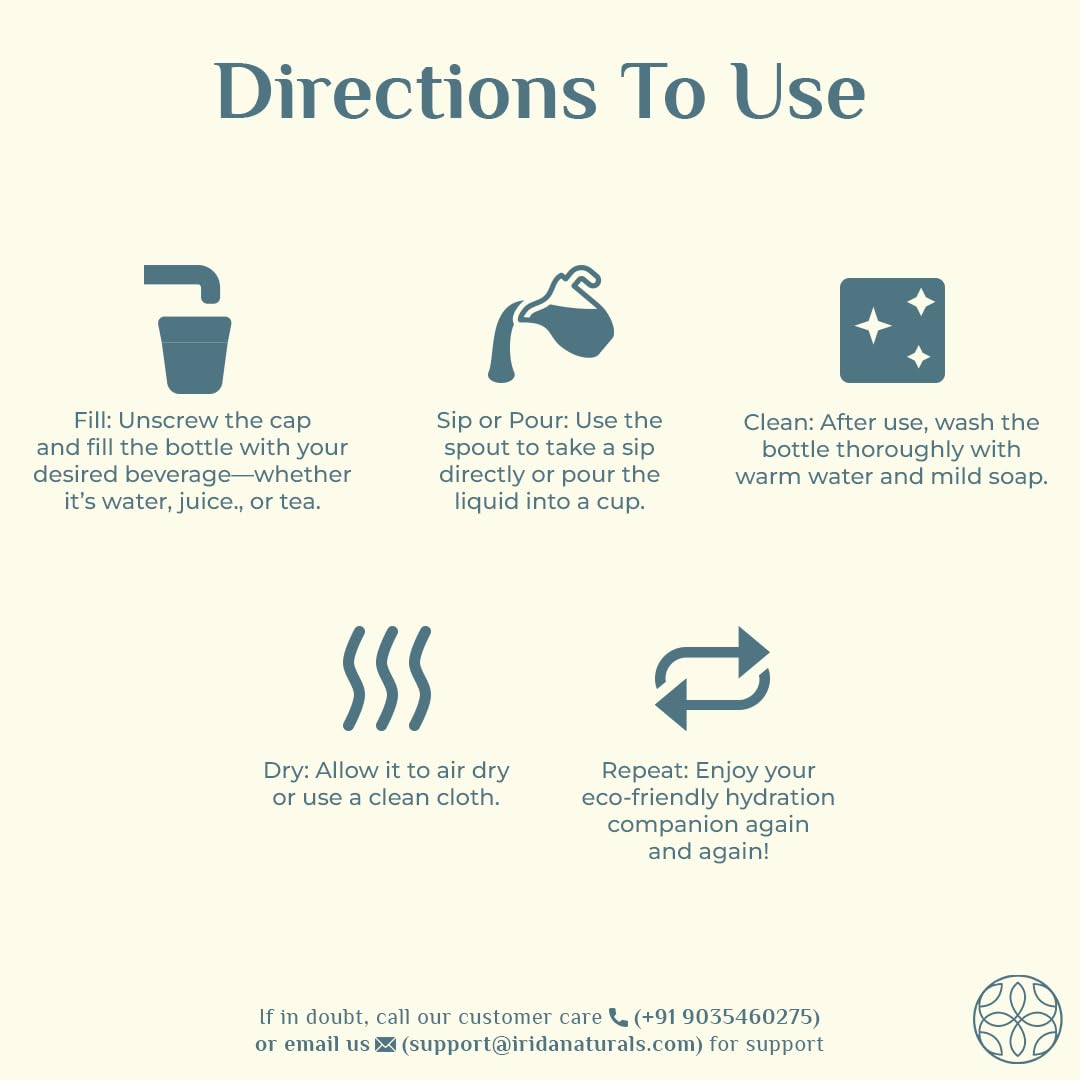 LIGHTWEIGHT & UNBREAKABLE: Lightweight water bottle from IRIDA Naturals are scratch and stain-resistant. Moreover, they are unbreakable bottle with good durability, which makes them an idealistic replacement for plastic and heavy steel bottle water. The leakproof lid makes sure that the bottle is closely sealed so that you can safely carry it inside your backpack or purse.