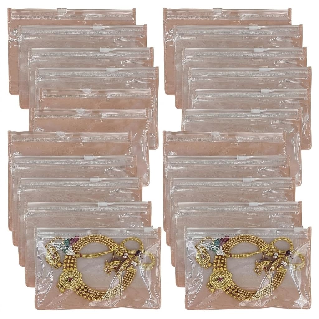 Keep your jewellery and accessories neatly arranged with these Jewellery Organiser Storage Pouches featuring a clear zip lock cover. Designed in multiple sizes, these pouches are perfect for storing rings, earrings, necklaces, bangles, bracelets, and even small makeup items. Made from high-quality PVC resin material with a durable zipper, they ensure long life, excellent protection, and easy access to your valuables. These transparent pouches allow you to quickly identify your items while keeping them safe from dust, moisture, and scratches. Lightweight, compact, and travel-friendly, they are ideal for organizing your dressing table, carrying jewellery during travel, or gifting to loved ones. With their premium finishing and elegant look, these storage pouches are a must-have for every jewellery lover. A perfect blend of style, durability, and functionality, these jewellery organiser pouches are also a thoughtful gift for your wife, sister, or friends.