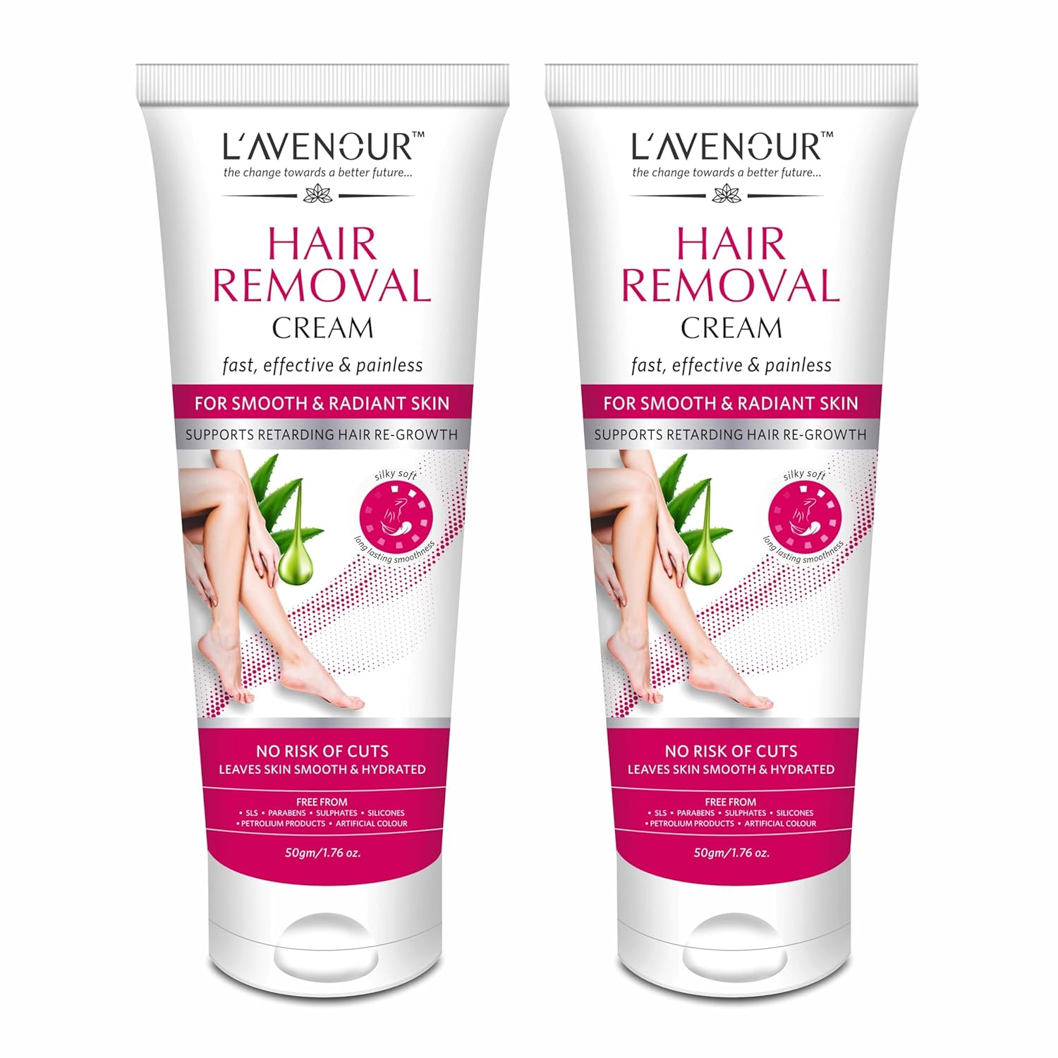 L’avenour Hair Removal Cream offers a gentle and effective solution for removing unwanted hair. Our formula is designed to be gentle on the skin, while still being tough on hair. Unlike shaving or waxing, our cream doesn’t leave behind any bumps, nicks, or cuts, and it doesn’t require any special tools or expertise to use. Moreover, our hair removal cream is enriched with natural ingredients like Aloe Vera, Coconut Oil, Almond Oil, Olive Oil, and Allantoin, which help to soothe and hydrate the skin while removing hair. It also supports Retarding Hair Re-Growth.