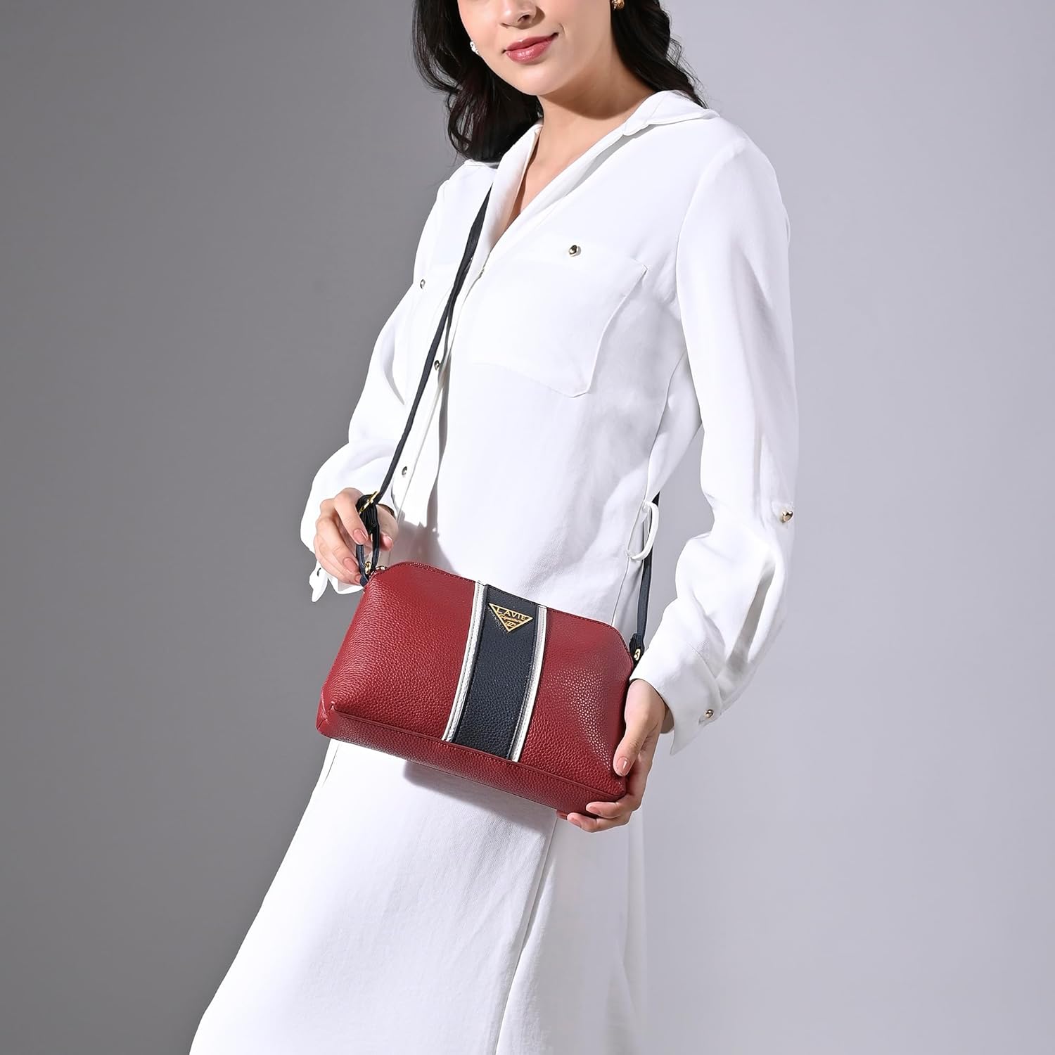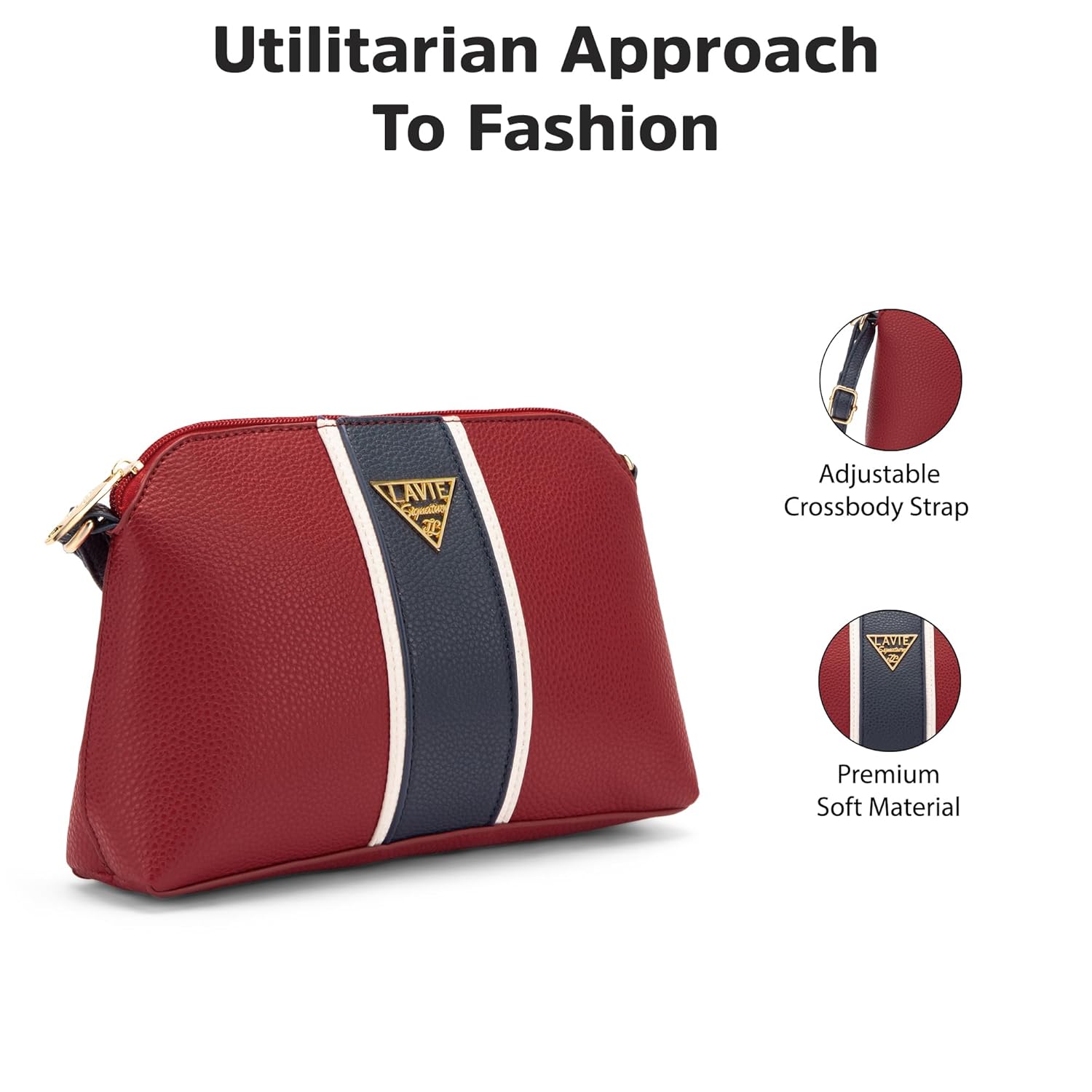 Add a wow factor to your look by carrying this spacious Slingbag from Lavie. It Features top zip opening with a compartment which contains 2 internal pockets and provides ample storage space. It also features premiuim textured design and a classy color block print with fabric lining inside.