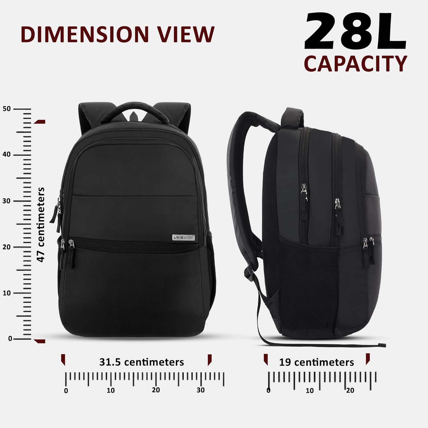 Lavie Sport 47cm Osprey 28 Litres Laptop Backpack For Men & Women | Business Laptop Bag | Upto 15.6″ Notebook/Macbook Compatible (Black)