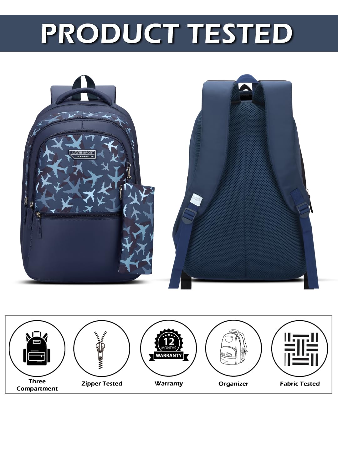 Introducing the ultimate 19-inch backpack from Lavie Sport featuring 3.5 spacious compartments, Raincover and new trendy, vibrant prints. This backpack delivers style, laptop compatiable design combines comfort and practicality and a dash of personality to elevate your school, college or daily commute