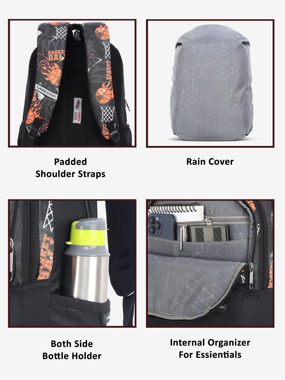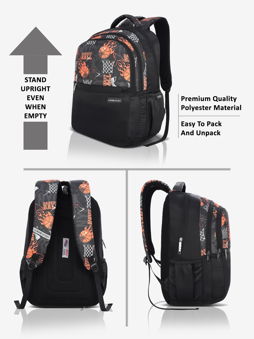 Be the first to review “Lavie Sport Basketball 35L Black Backpack | Fits Upto 15 Inch Laptop | Organizer & Bottle Holder |Rain Cover | Gift for Men, Women, Boys, Girls | Laptop Sleeve for School & College”
