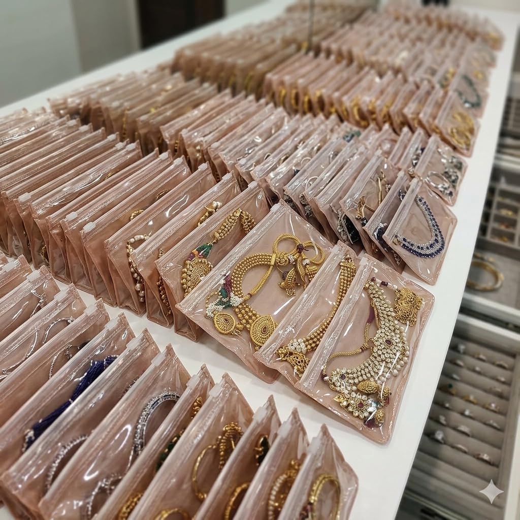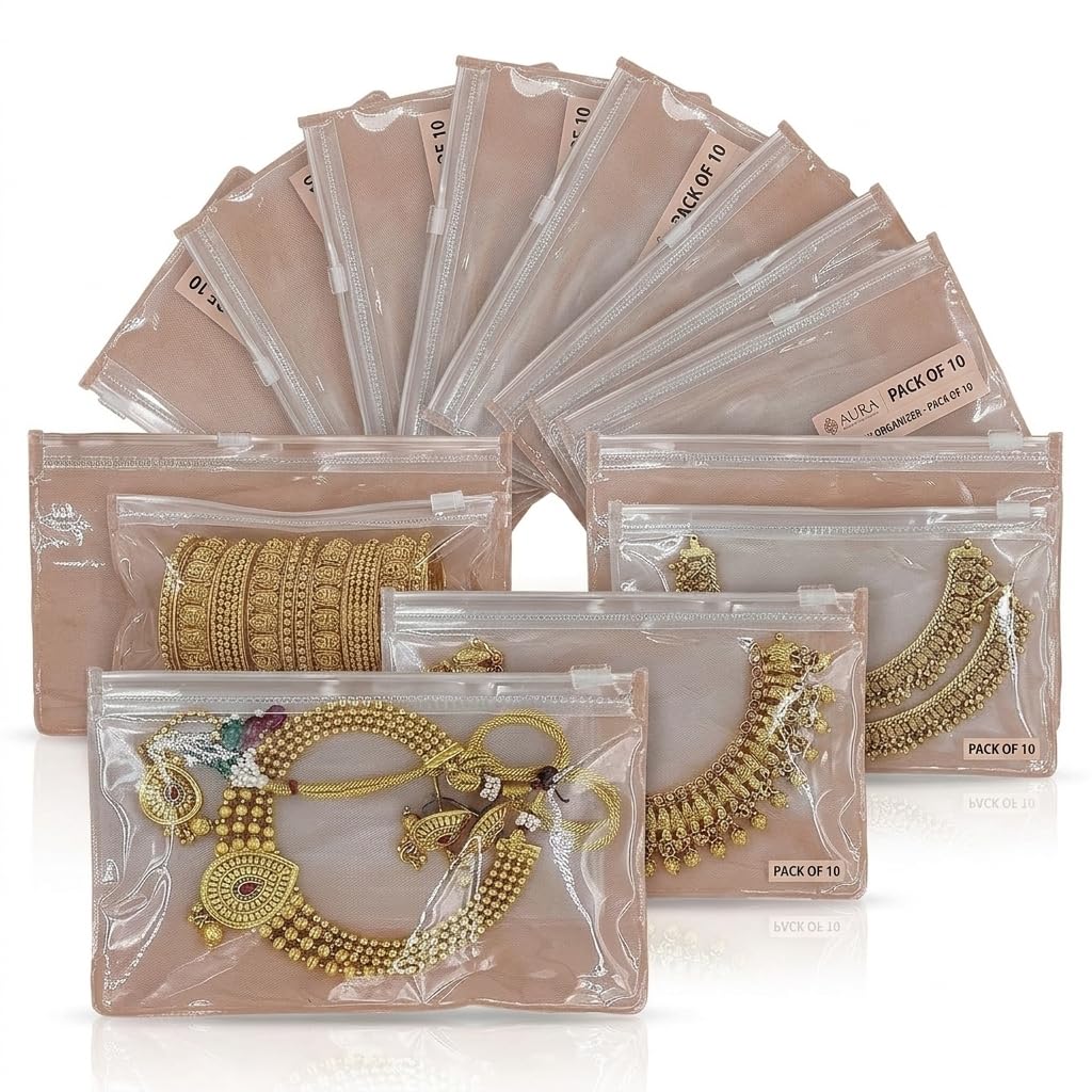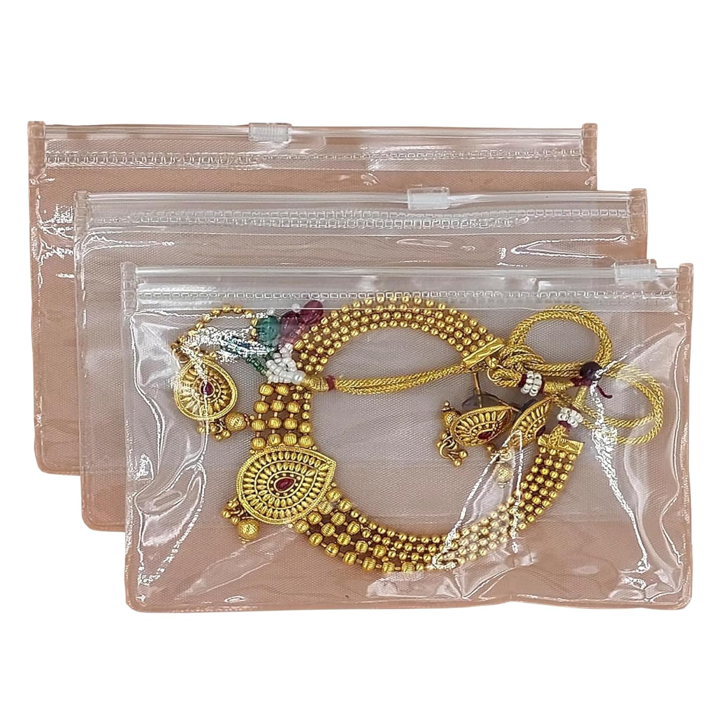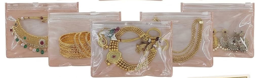 Keep your jewellery and accessories neatly arranged with these Jewellery Organiser Storage Pouches featuring a clear zip lock cover. Designed in multiple sizes, these pouches are perfect for storing rings, earrings, necklaces, bangles, bracelets, and even small makeup items. Made from high-quality PVC resin material with a durable zipper, they ensure long life, excellent protection, and easy access to your valuables. These transparent pouches allow you to quickly identify your items while keeping them safe from dust, moisture, and scratches. Lightweight, compact, and travel-friendly, they are ideal for organizing your dressing table, carrying jewellery during travel, or gifting to loved ones. With their premium finishing and elegant look, these storage pouches are a must-have for every jewellery lover. A perfect blend of style, durability, and functionality, these jewellery organiser pouches are also a thoughtful gift for your wife, sister, or friends.