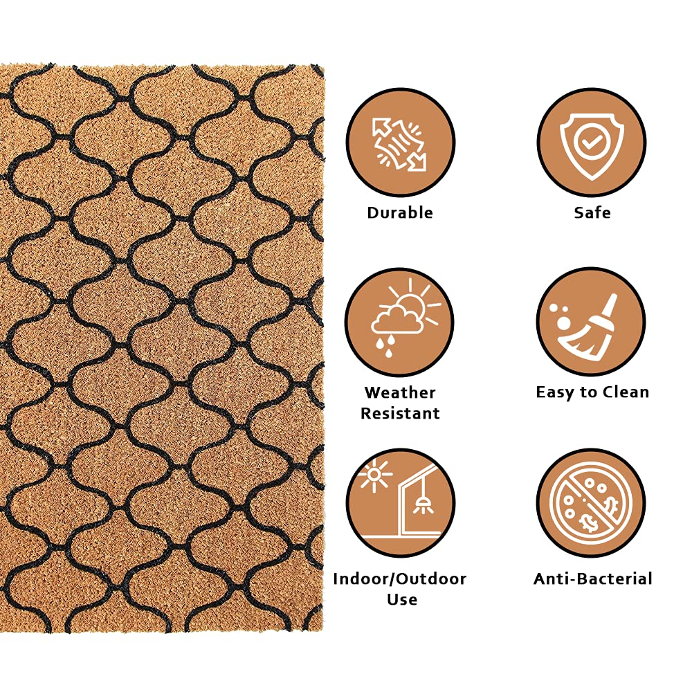 Anti-Skid Coir Mat: The non-slip mat for home and office is suitable for any weather. The coir and rubber of our outdoor mats for front door help provide year-round reliability and strength. Rubber provides a flexible back that is non-skid and averts slipping even when the mat is heavily covered in mud or wet.