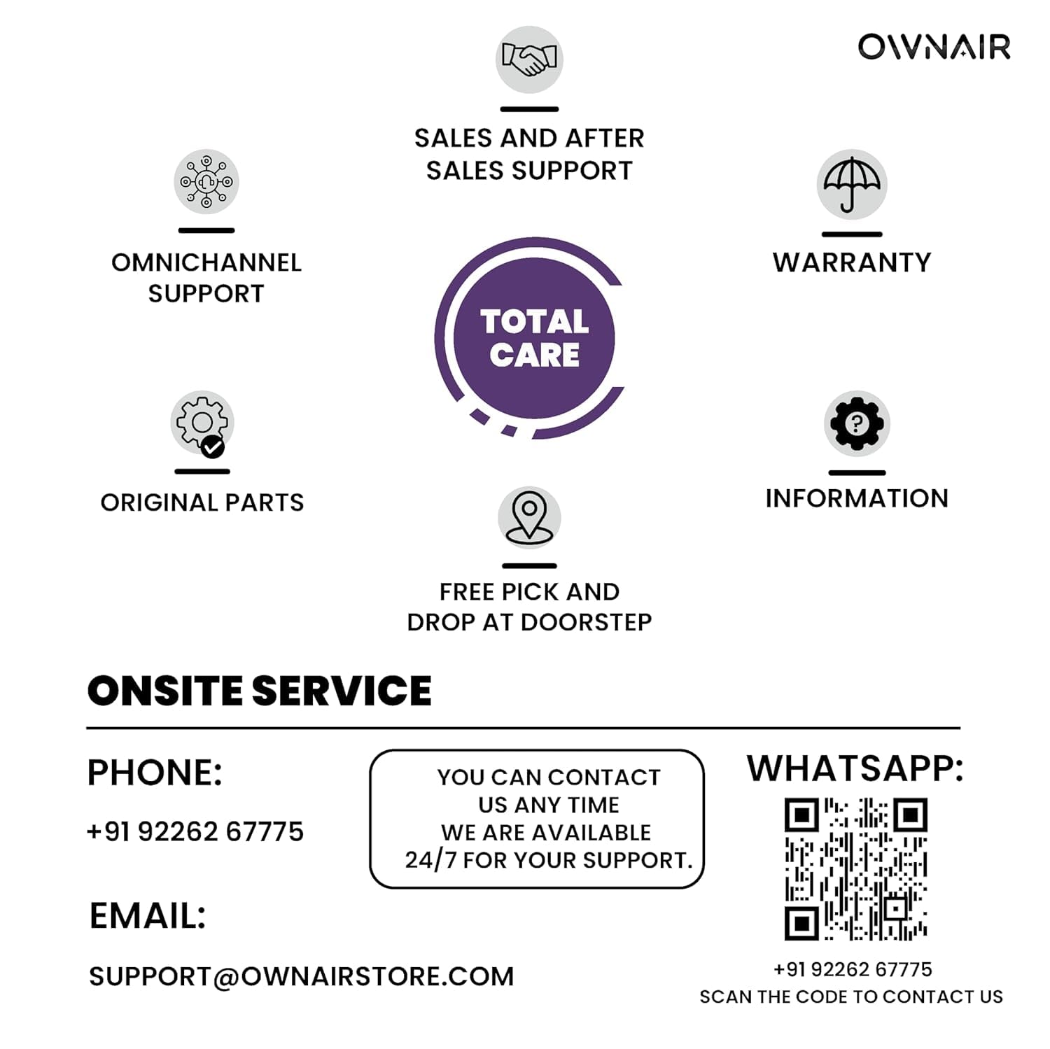 𝐋𝐢𝐟𝐞𝐭𝐢𝐦𝐞 𝐒𝐮𝐩𝐩𝐨𝐫𝐭, 𝟐𝟒𝐱𝟕 𝐀𝐯𝐚𝐢𝐥𝐚𝐛𝐥𝐞: Count on OWNAIR for unwavering assistance throughout the lifetime of your blenders for smoothies and juices. Our dedicated support team is available round-the-clock, ready to address any queries or concerns you may have, ensuring uninterrupted peace of mind and satisfaction.