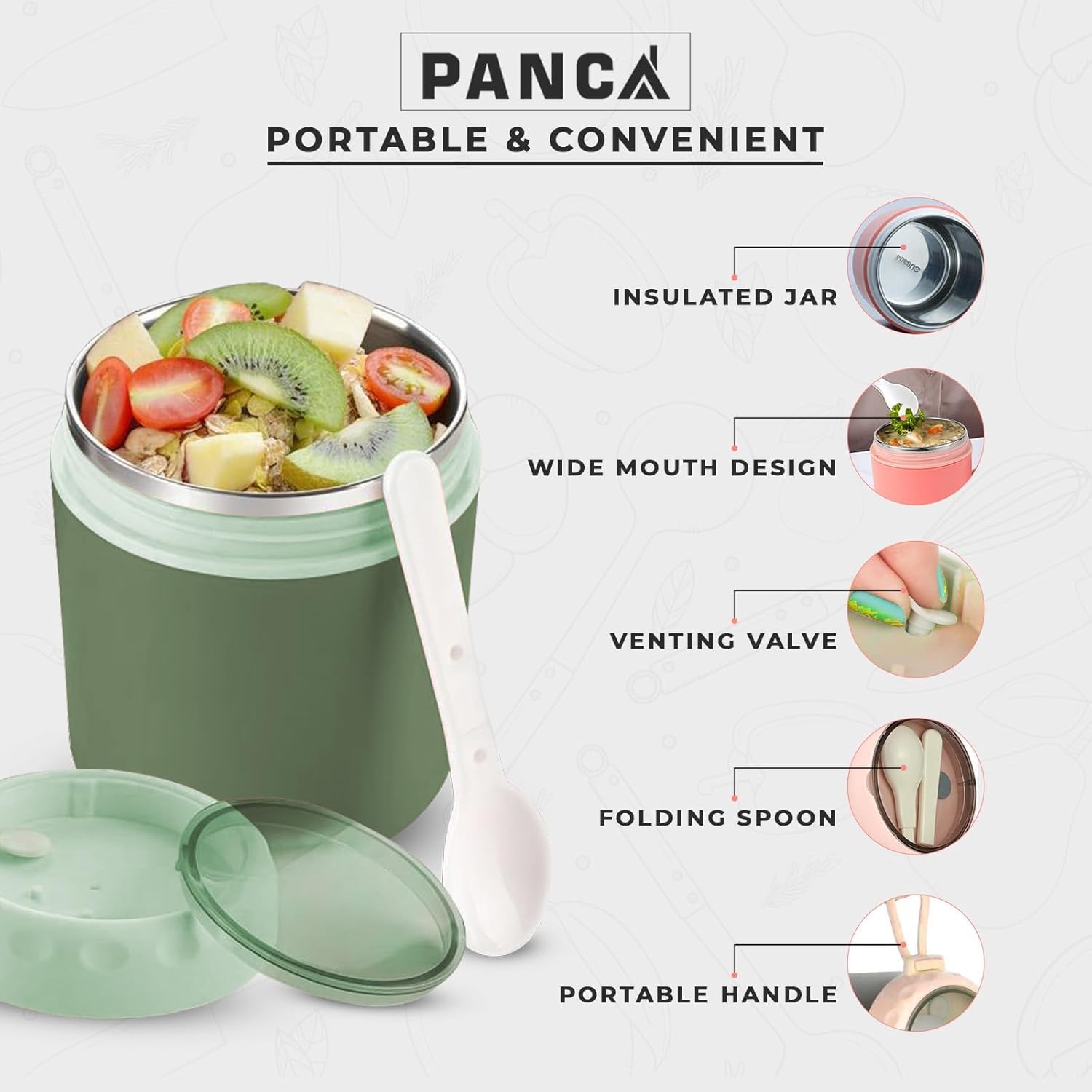 🍲 Hot & Cold Insulation – The PANCA insulated soup cup is crafted with premium stainless steel and advanced vacuum insulation technology, keeping your soups, curries, noodles, or drinks hot up to 8 hours and cold up to 10 hours, ensuring fresh meals wherever you go.