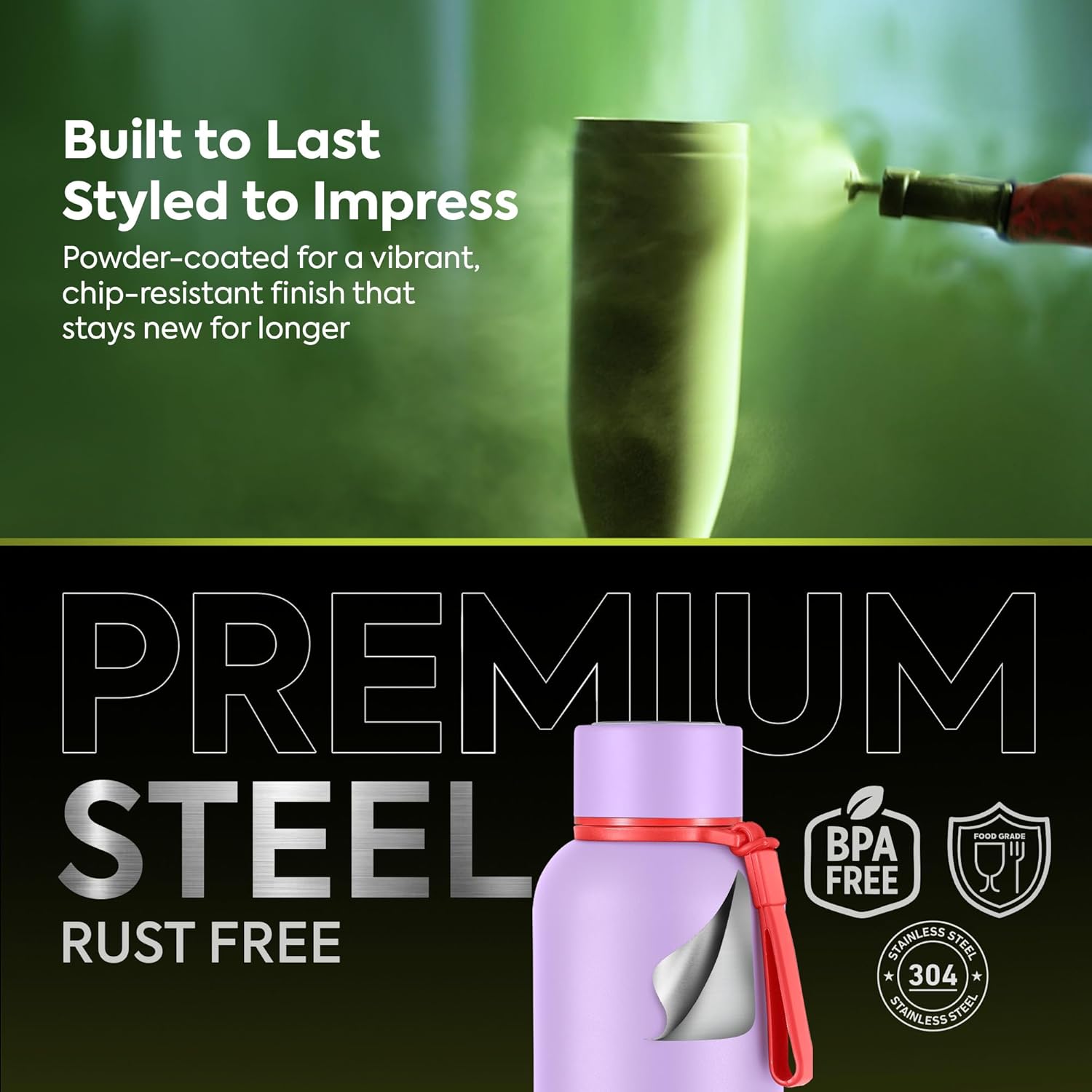 PREMIUM QUALITY MATERIAL: Made with high-grade SS304 stainless steel flask material that resists rust, odor, and bacteria. Your drinks stay fresh, safe, and pure every time.