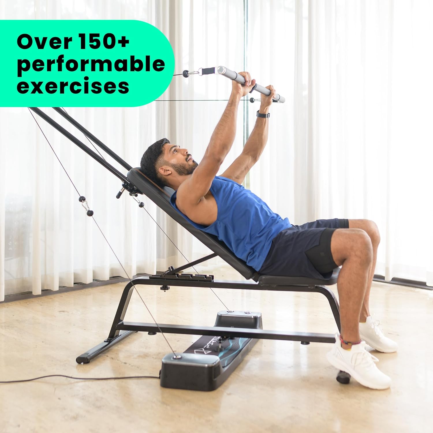 150+ Advanced Exercises: Perform chest presses, cable flys, lat pulldowns, leg extensions, ab crunches, squats, deadlifts, and rowing—all in one compact system.