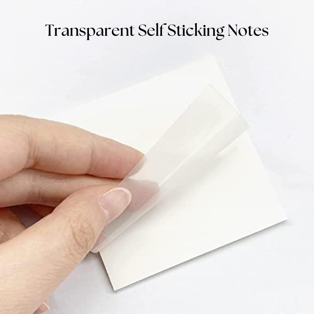 Quantity and size: you will get 2 packs of transparent sticky notes, the sizes are 3 x 3 inch, 50 sheet per pack, 100 sheet in total; Sufficient quantity and size of sticky notes to meet your use and replacement
