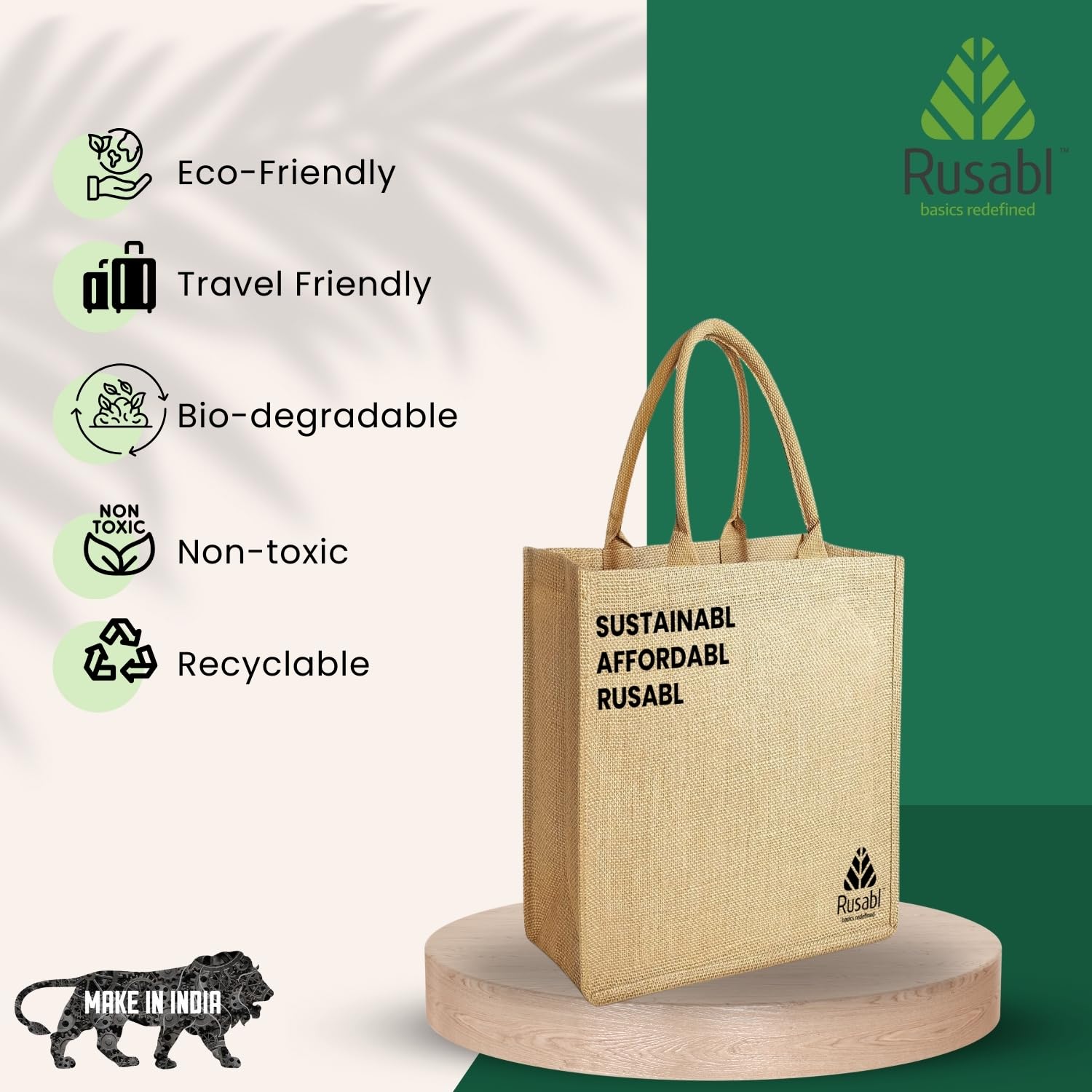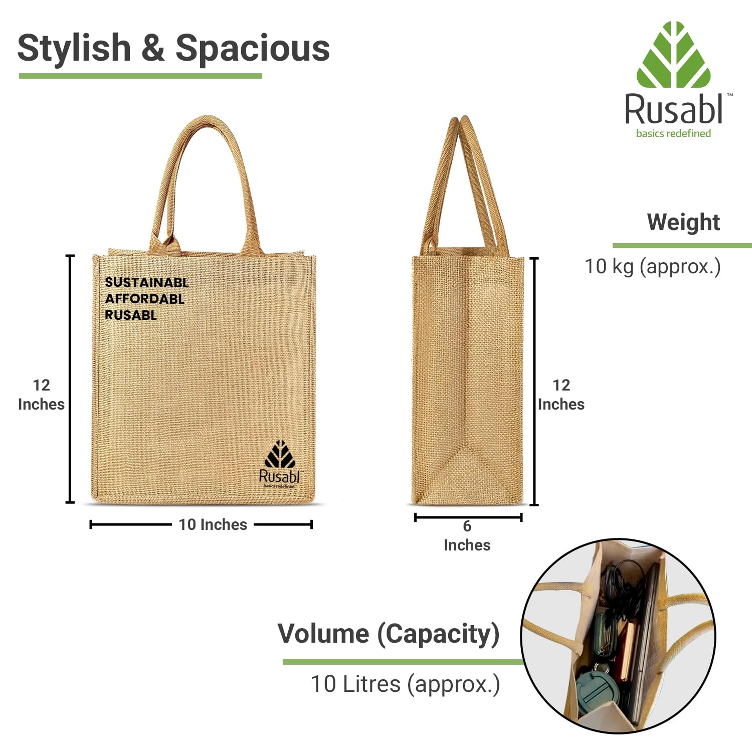 Eco-friendly Choice: Choose sustainability with the Rusabl Jute Bag made from natural fibres, offering an eco-friendly alternative to plastic bags. Join the movement to reduce environmental impact.