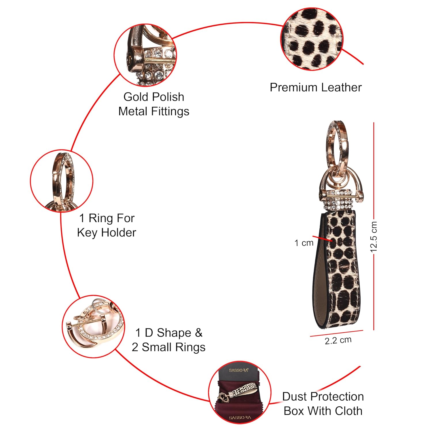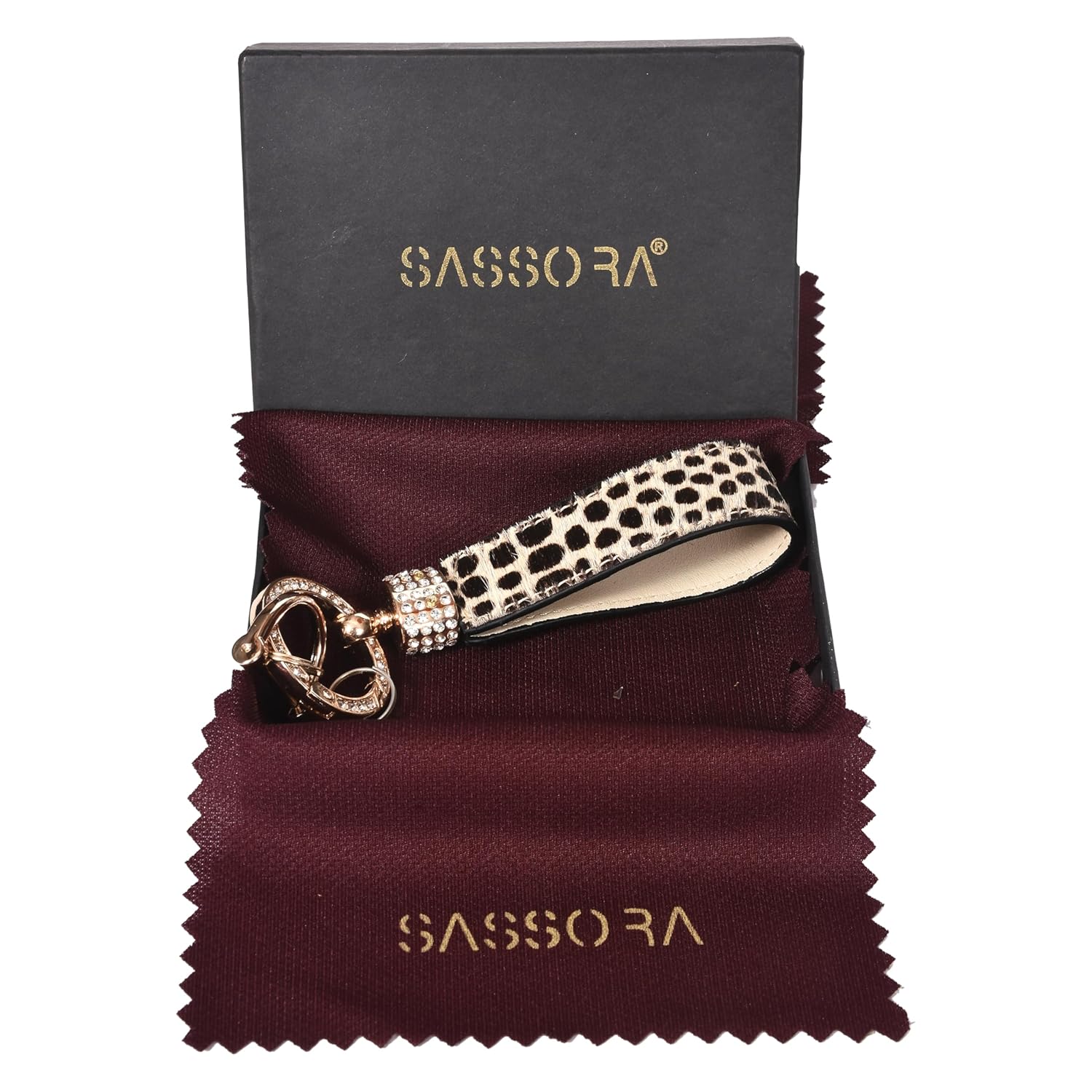 More than just a keychain, this is a statement accessory. The Sassora Leopard Print Bag Charm brings a dash of wild sophistication to your favorite handbag or set of keys. Crafted from premium leather and finished with gleaming gold-tone hardware, it’s designed for both style and function. The secure clip attaches effortlessly to your purse, while the versatile ring system keeps all your important keys organized. It’s the perfect way to express your style and keep your essentials in order.