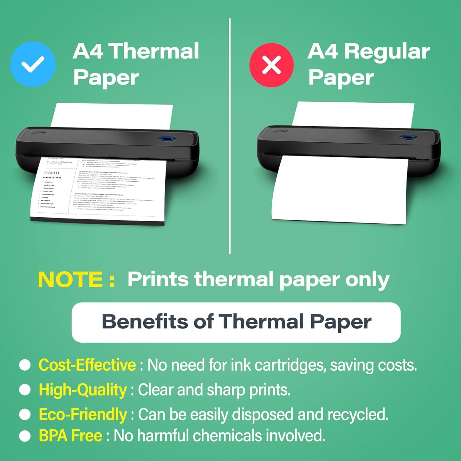 𝐈𝐍𝐊𝐋𝐄𝐒𝐒 𝐓𝐇𝐄𝐑𝐌𝐀𝐋 𝐏𝐑𝐈𝐍𝐓𝐈𝐍𝐆, 𝐄𝐂𝐎-𝐅𝐑𝐈𝐄𝐍𝐃𝐋𝐘 𝐀𝐍𝐃 𝐂𝐎𝐒𝐓-𝐒𝐀𝐕𝐈𝐍𝐆: Enjoy hassle-free printing without the need for ink cartridges, using advanced thermal printing technology of inkless printer a4 size. Save on costs with this eco-friendly portable printer.